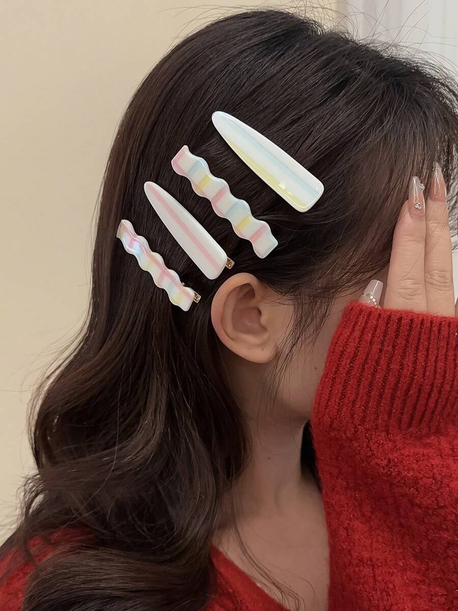Kawaii 4 Piezas/set Clips De Pelo De Ácido Acético Para Mujeres Sin Dejar Rastro, Para Fijar Flequillo Y Cabello