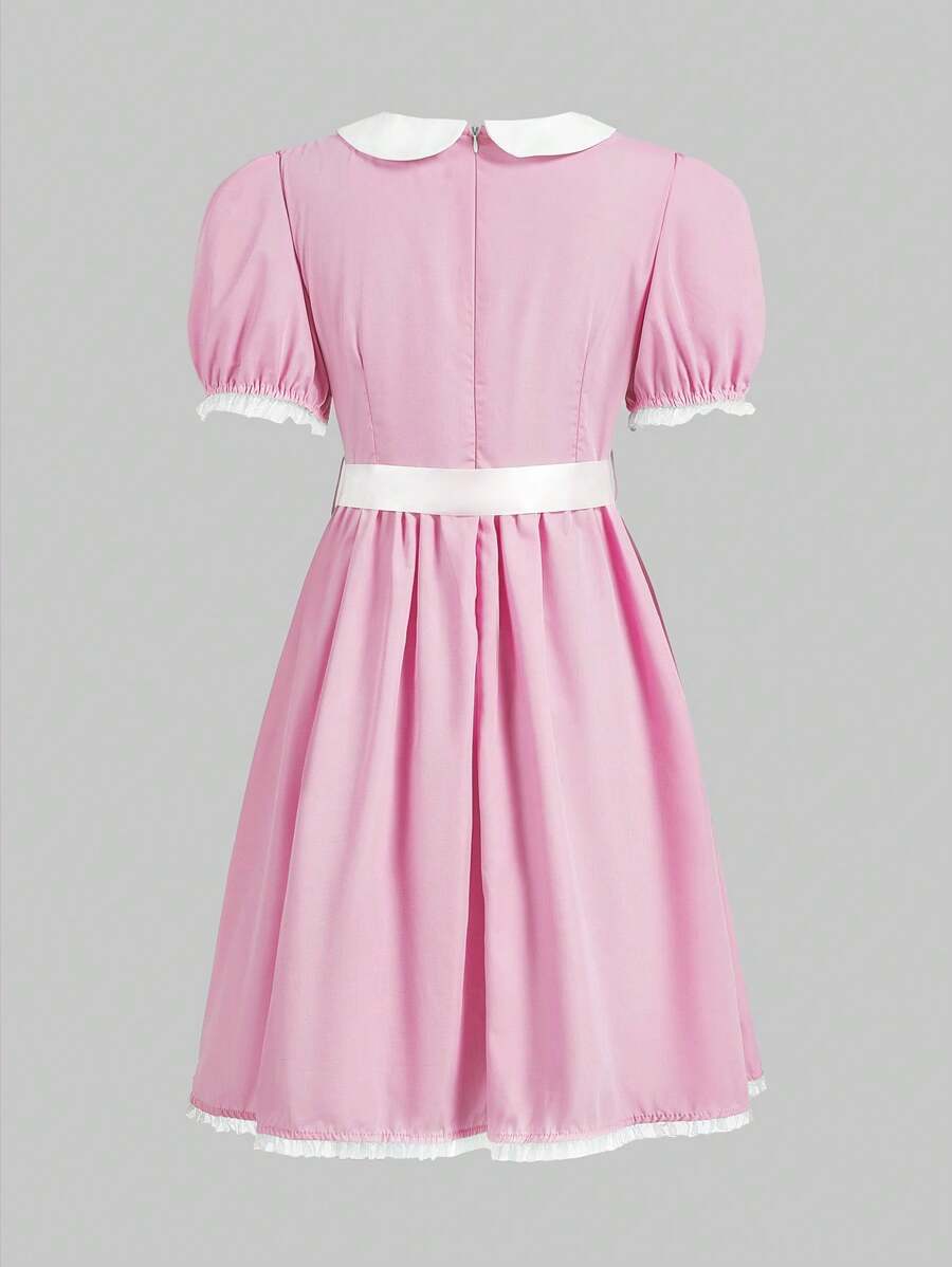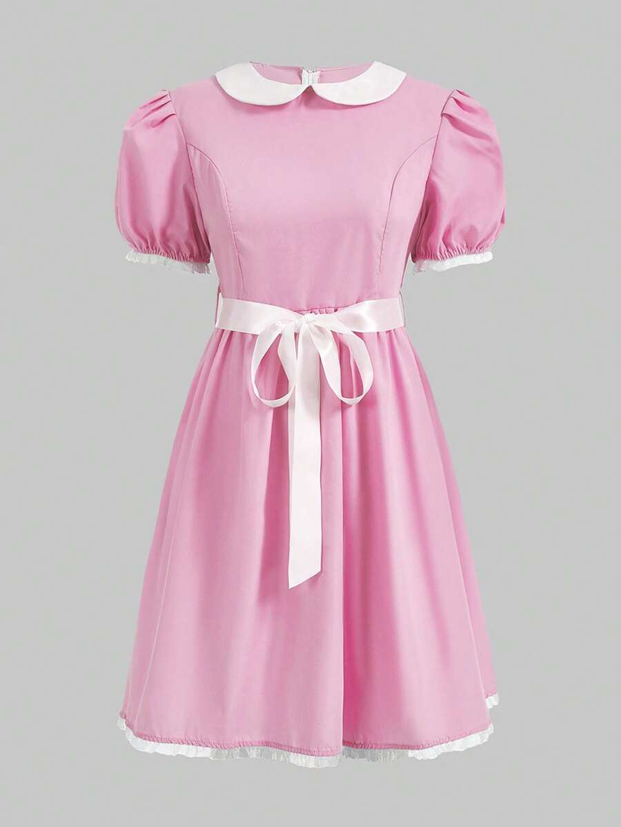 Kawaii Vestido de bebé con cuello Peter Pan y mangas abullonadas