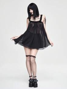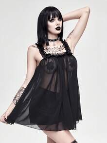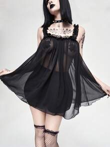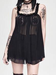 Kawaii Conjunto sexy de camisón rosa de gasa con perspectiva, estilo dulce de colegiala