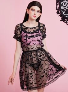 Kawaii Babydoll con estampado de murciélago & Tanga