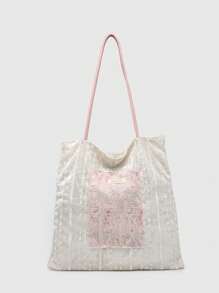 Kawaii Bolso de hombro tipo tote para mujer con adorno de flor de lazo, cinta y encaje con estampado floral ditsy