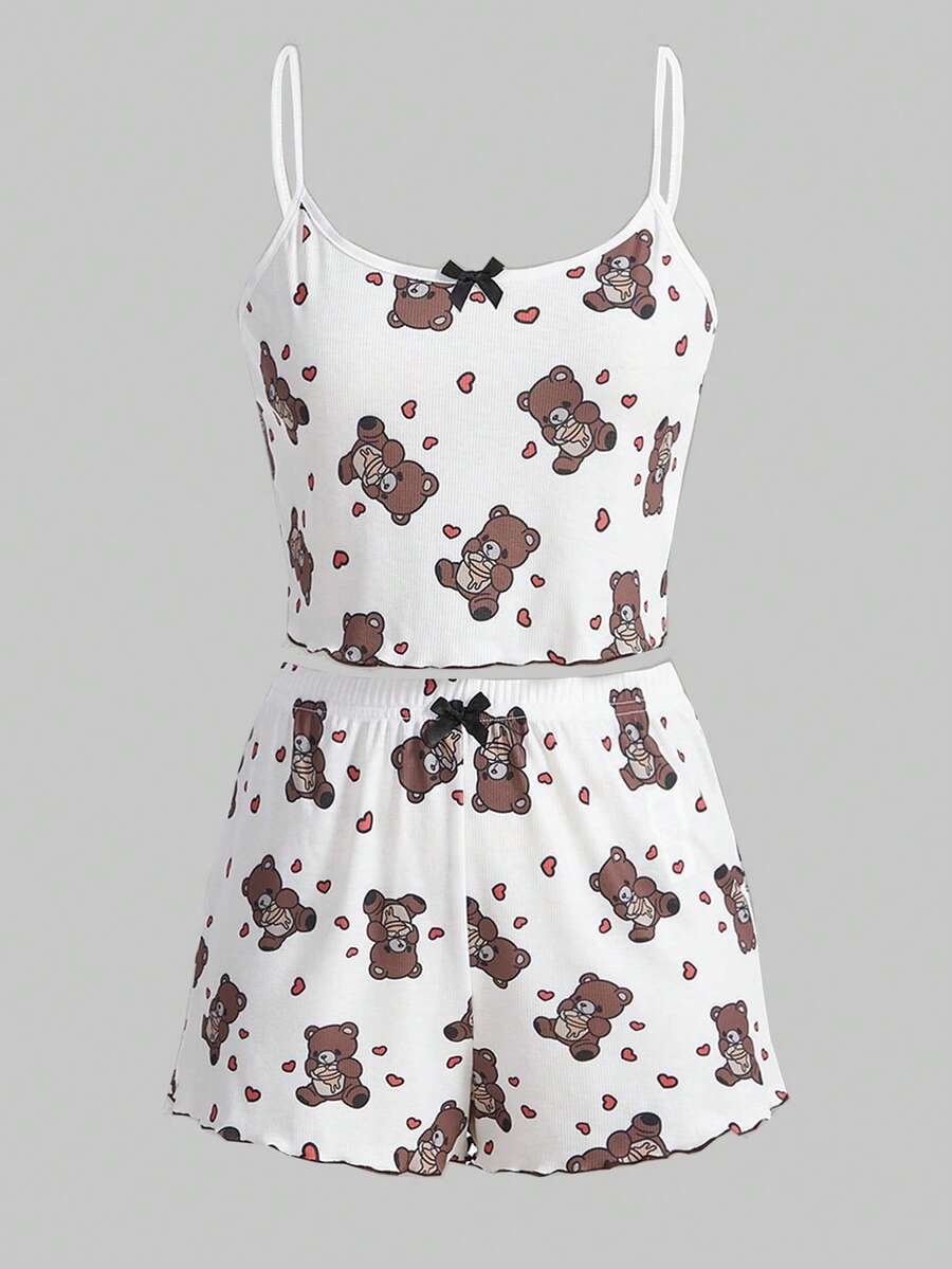 Kawaii Conjunto de pijama con estampado de oso de dibujos animados