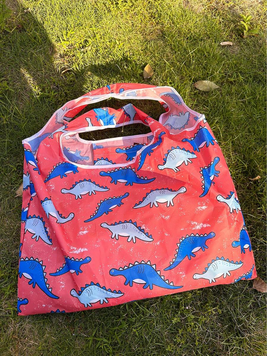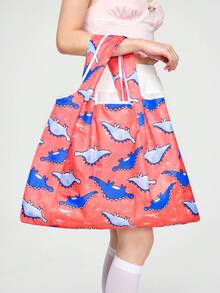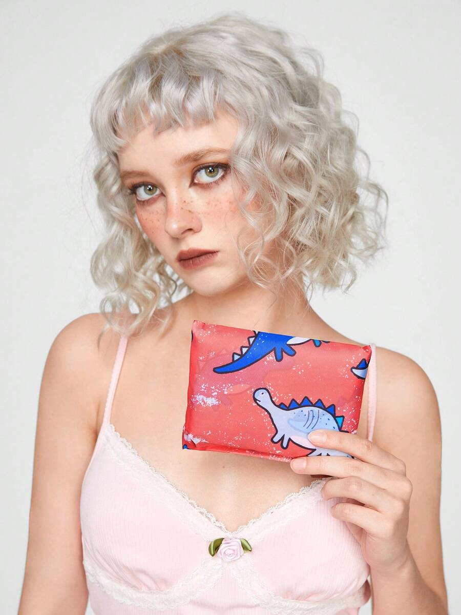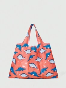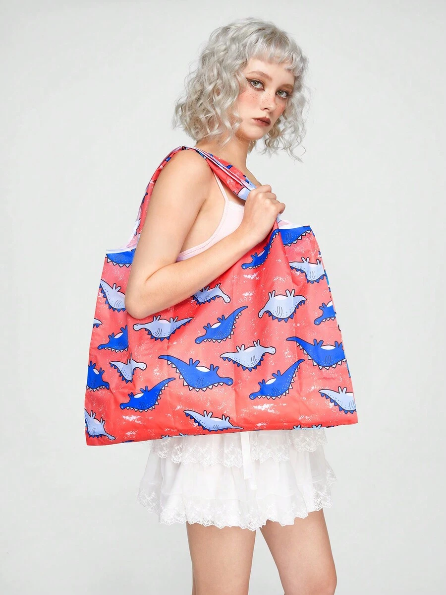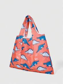 Kawaii Bolsa De Mano De Compras Portátil Y Plegable Con Cremallera Y Cartera De Monedas De Gran Capacidad Con Estampado De Dinosaurios Caricatura