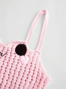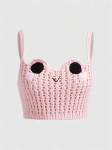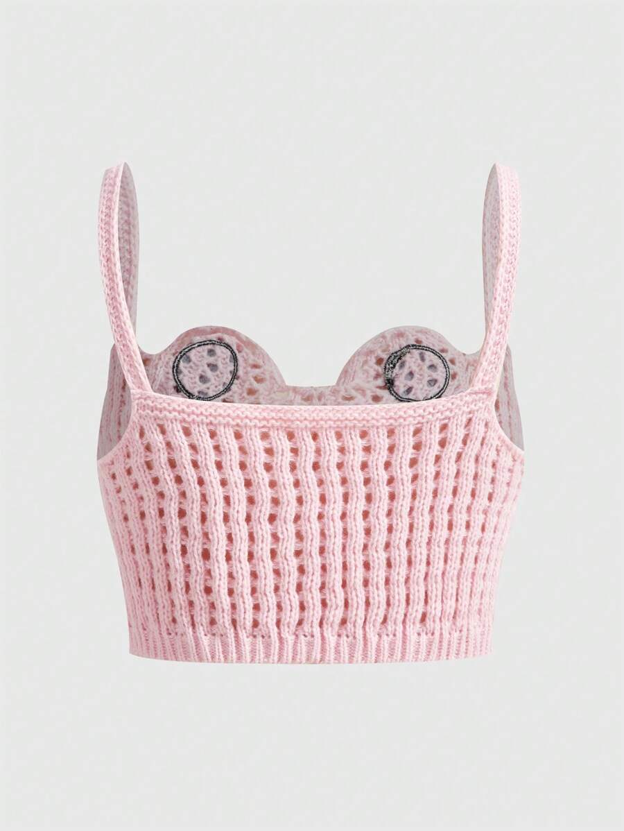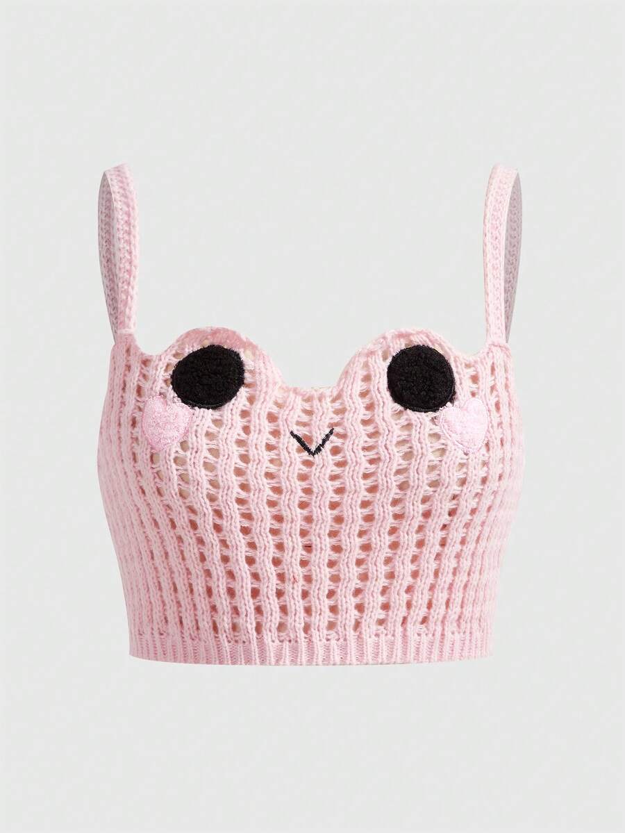 Kawaii Top tejido de tirantes con bordado de dibujos animados