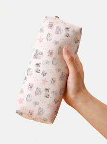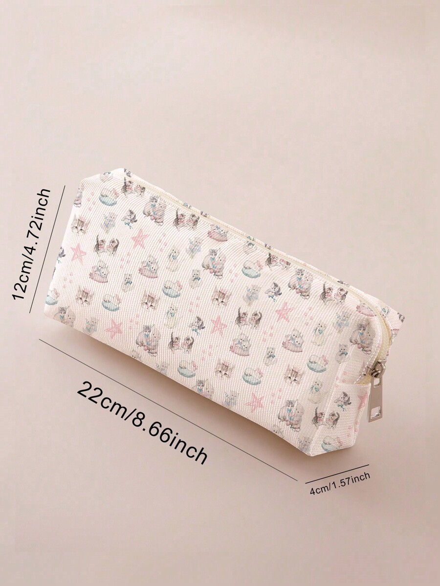 Kawaii Estuche para lápices con patrón impreso de huellas de gato y estrella a doble cara, para escuela
