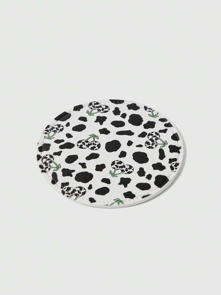 Kawaii Juego de posavasos premium con diseño de cereza y leopardo cosidos con borde aceitado