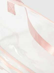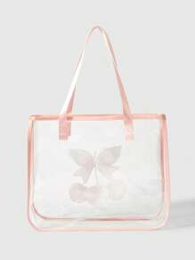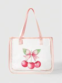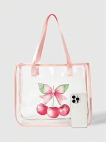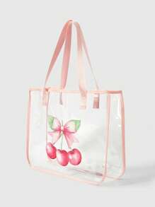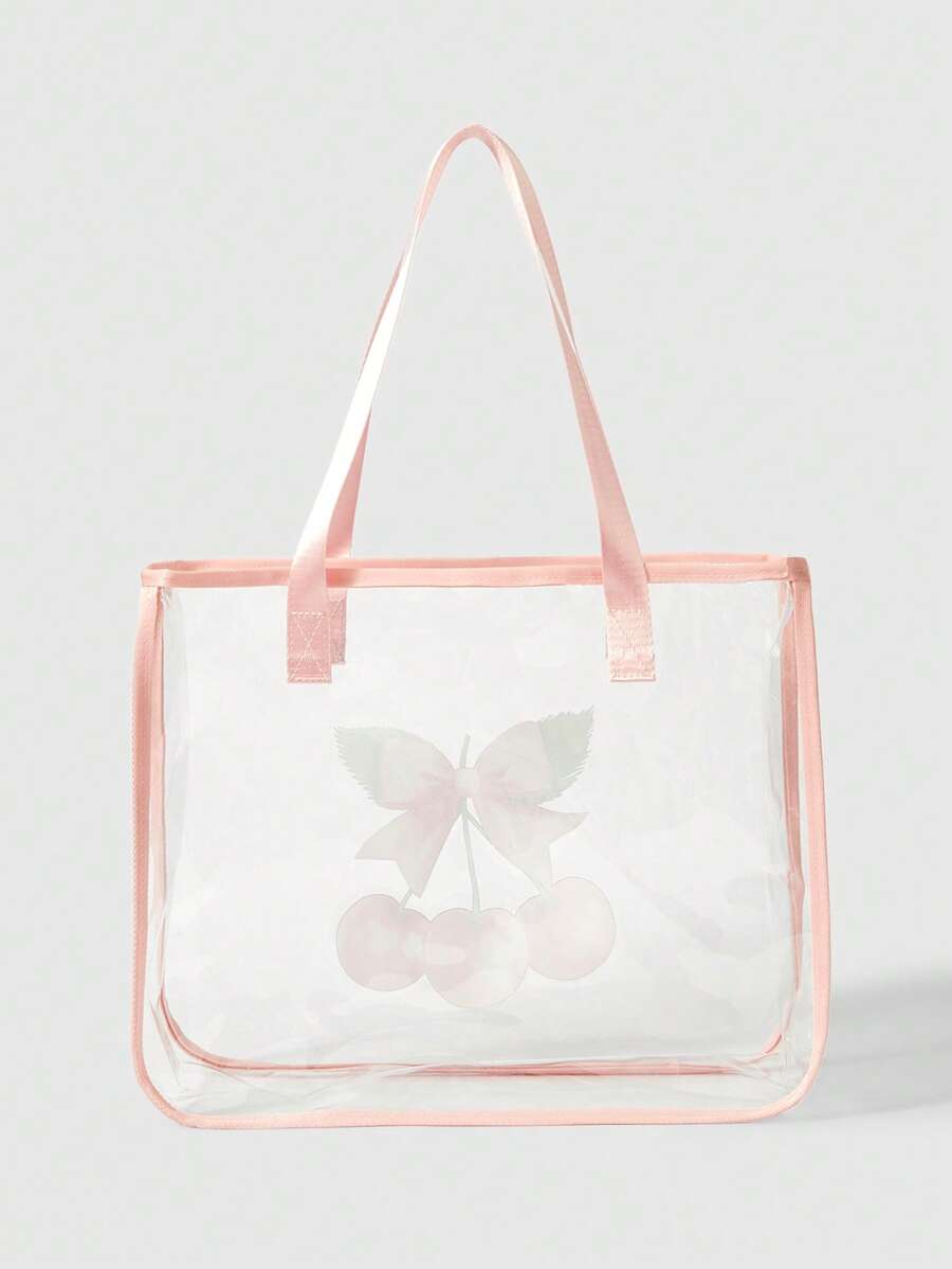 Kawaii Bolso de playa tipo tote transparente de color rosa cereza