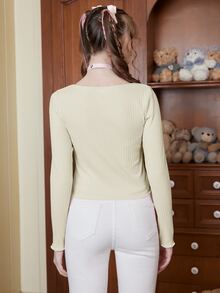 Kawaii Camiseta con encaje en contraste con botón delantero