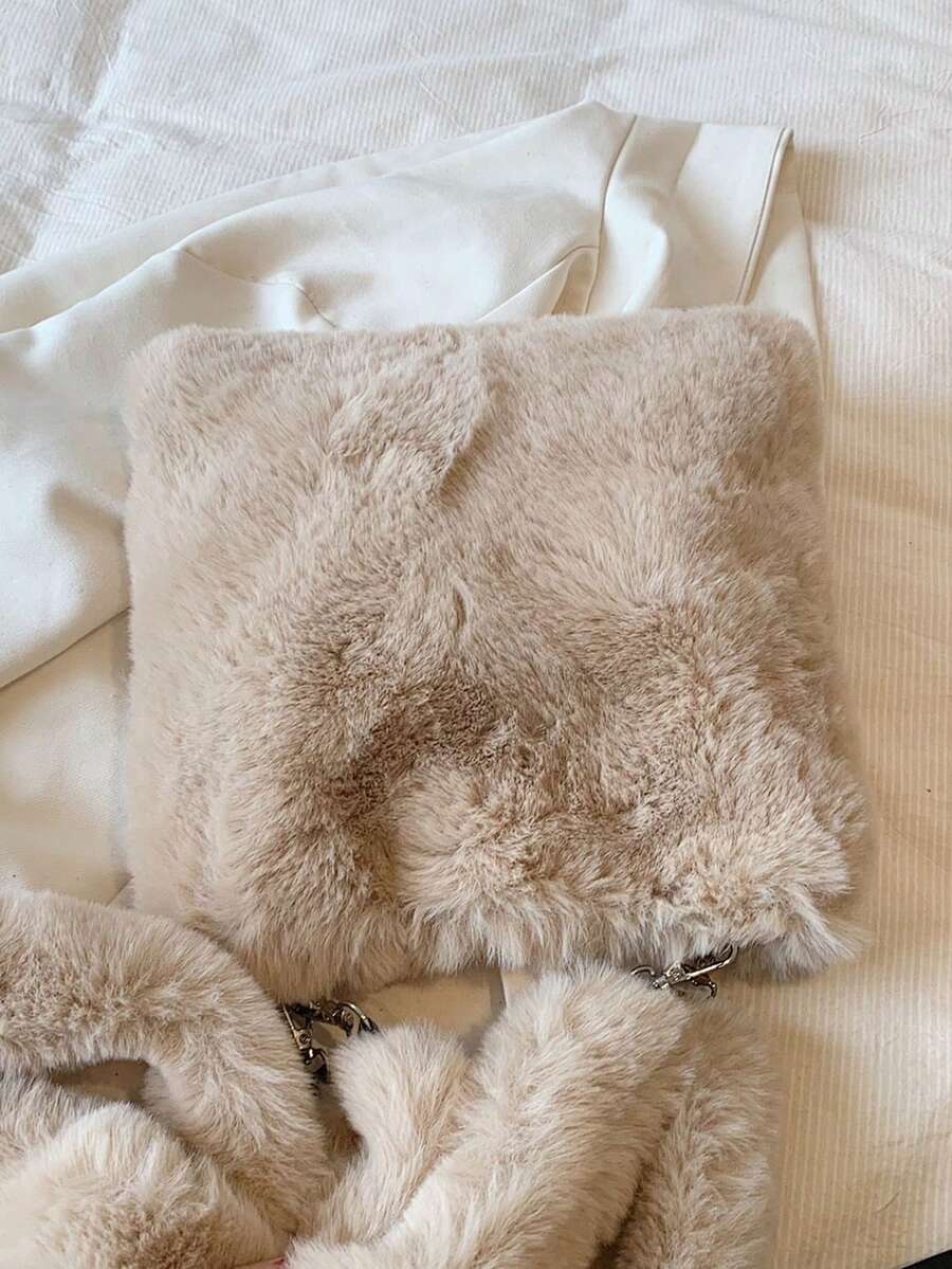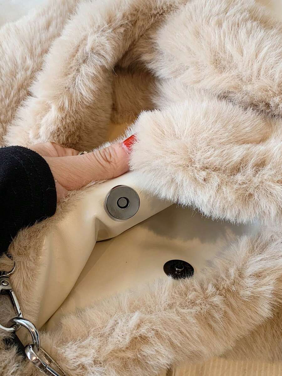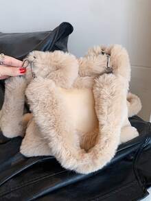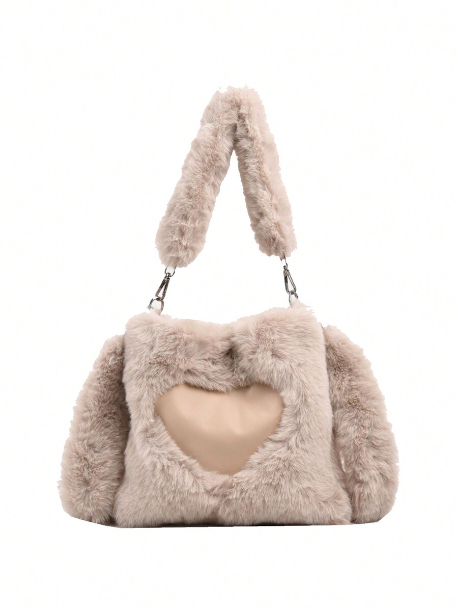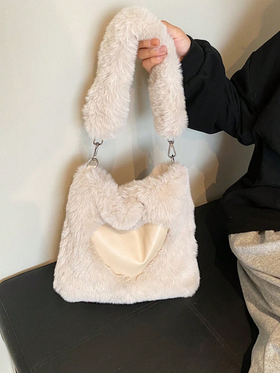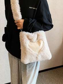 Kawaii Lindo Bolso De Mano De Peluche En Forma De Corazón Para Mujeres, Bolso Grande De Hombro Y Cruzar El Cuerpo Para Invierno