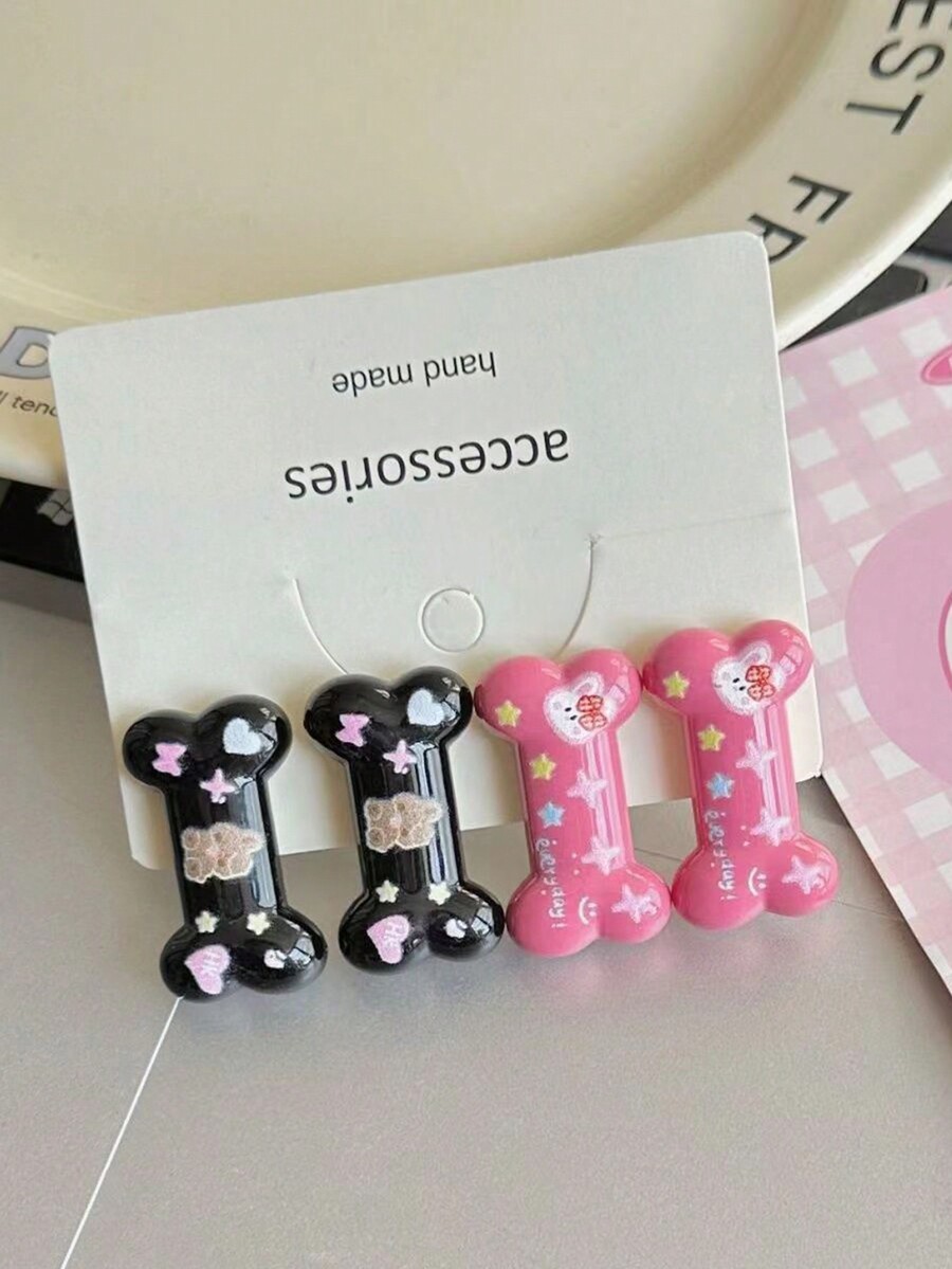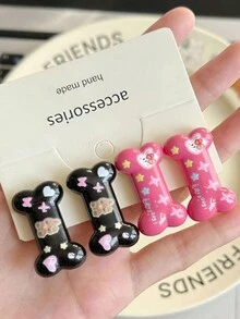Kawaii Lindo Clip De Pelo Con Forma De Hueso, Rosa Y Negro