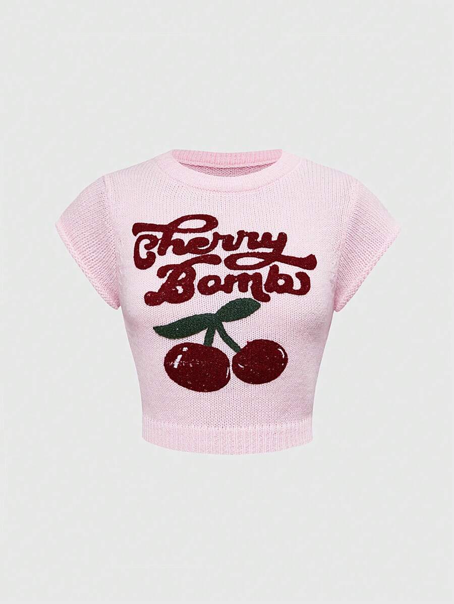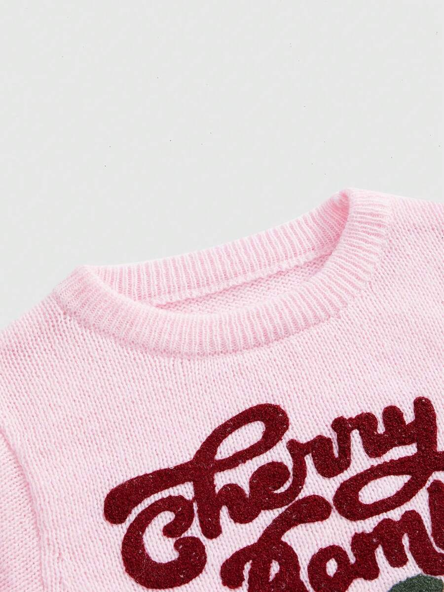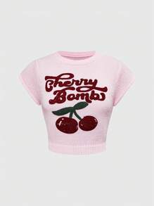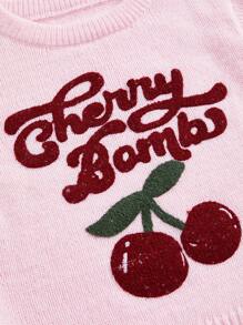 Kawaii Suéter de mujer de estilo universitario casual, lindo y puro, con bordado de cerezas, cuello alto y mangas farol