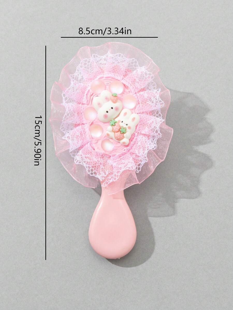 Kawaii Peine de pelo con gel y crema decorado con conejo y encaje rosa