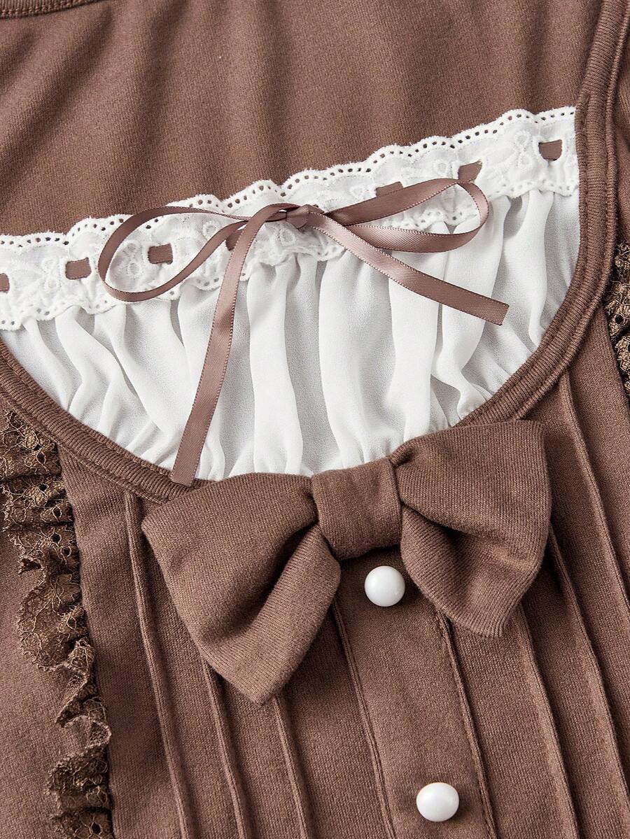 Kawaii Camiseta de manga larga para mujer con decoración de lazo, linda y dulce, 2 en 1
