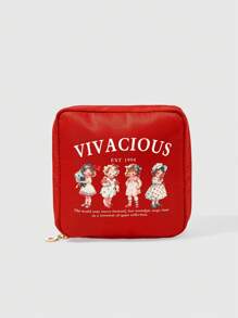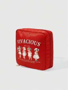 Kawaii Bolsa cosmética portátil de gran capacidad con acolchado grueso, de estilo retro y dibujos animados, de forma cuadrada pequeña, artículo 442464