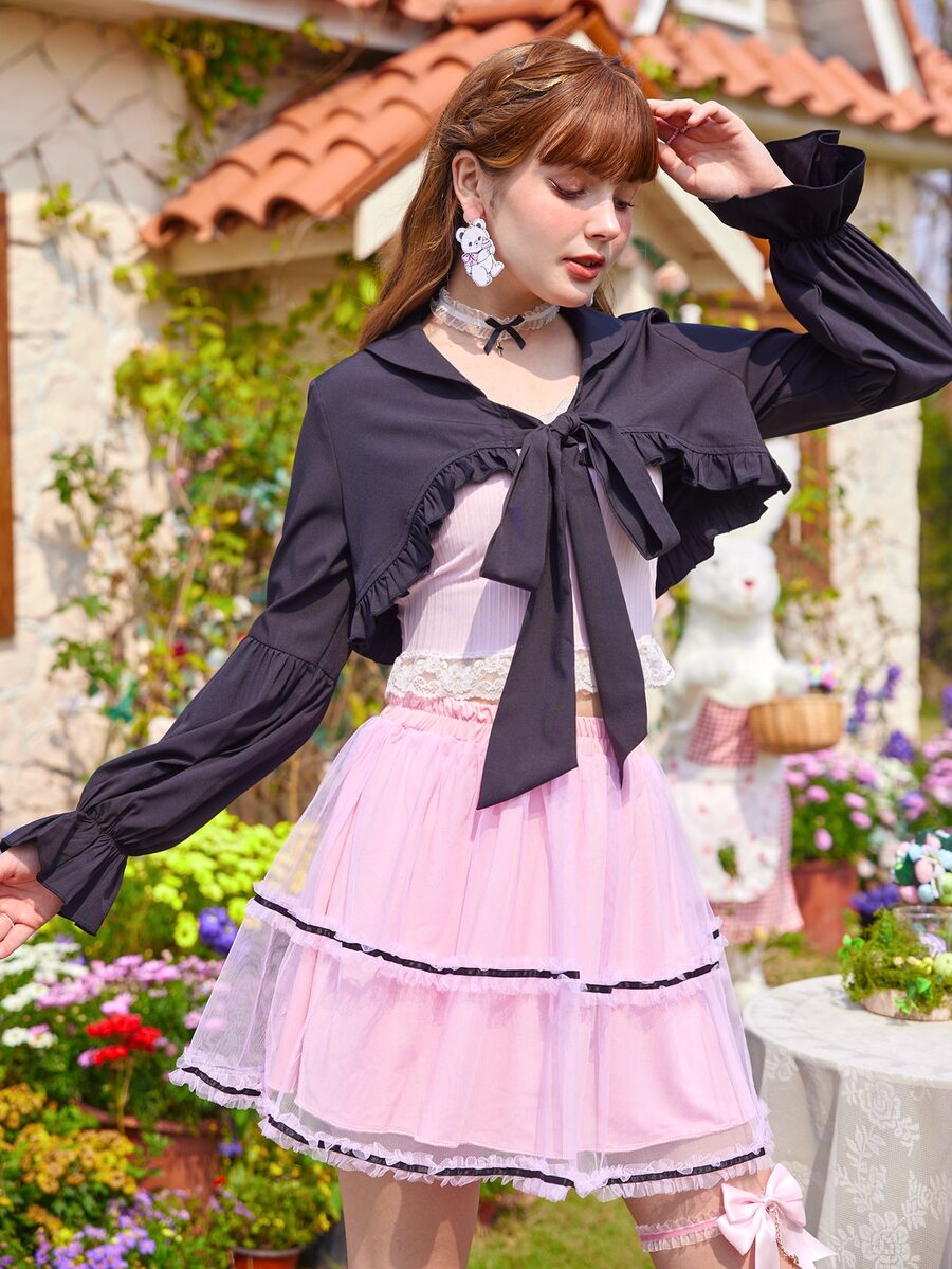 Kawaii Tops de mujeres Volante Lazo delantero Liso Casual