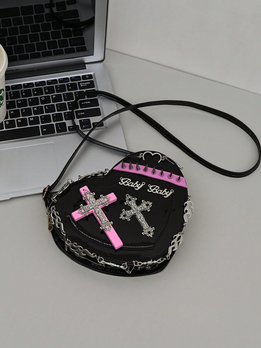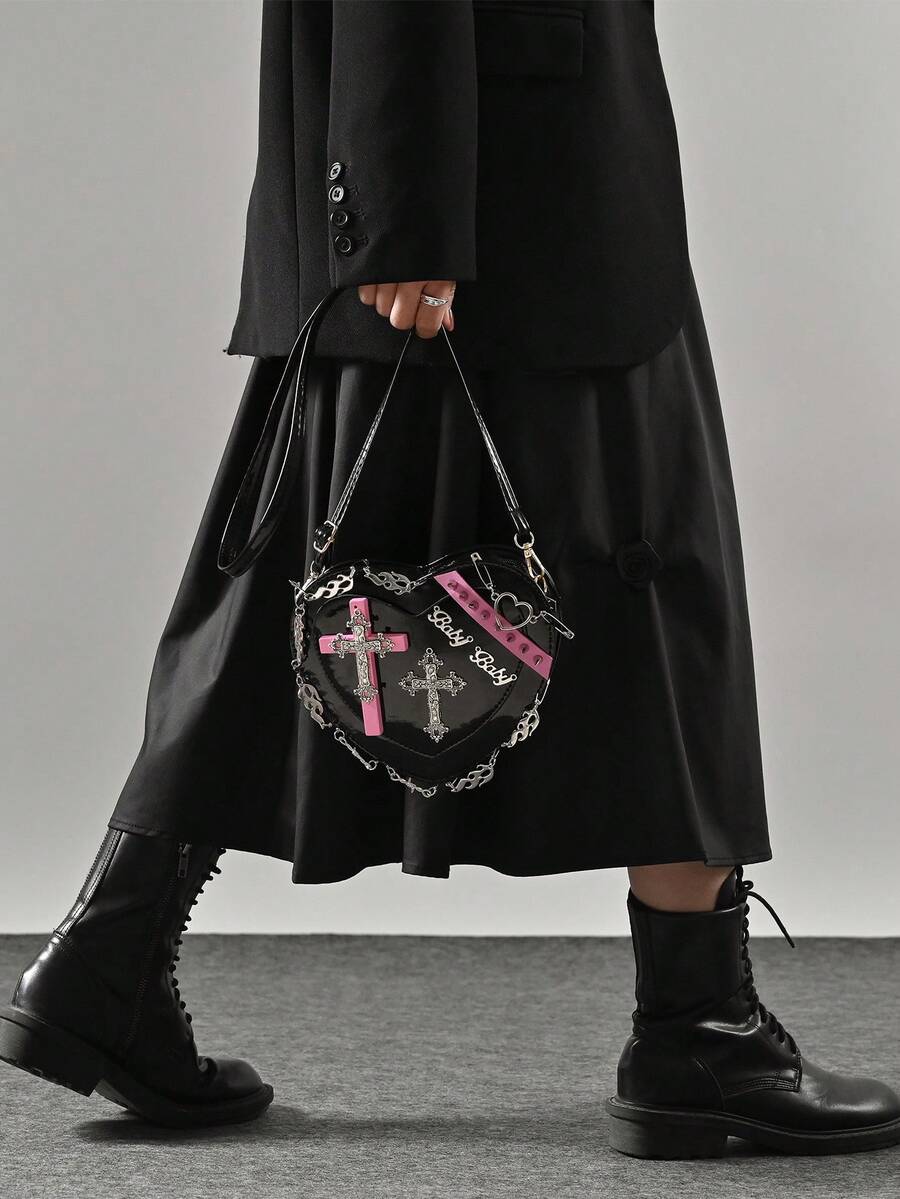 Kawaii Bolso De Hombro De Mujer Estilo Gótico Punk Con recubierto, Decoración De Corazones Y Remaches