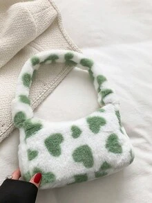 Kawaii Bolso de hombro con estampado de corazón mullido