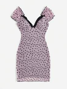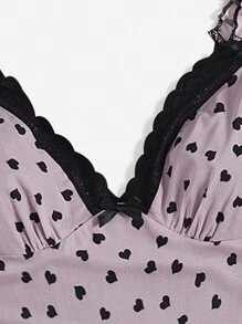 Kawaii Vestido con estampado de corazón con encaje en contraste