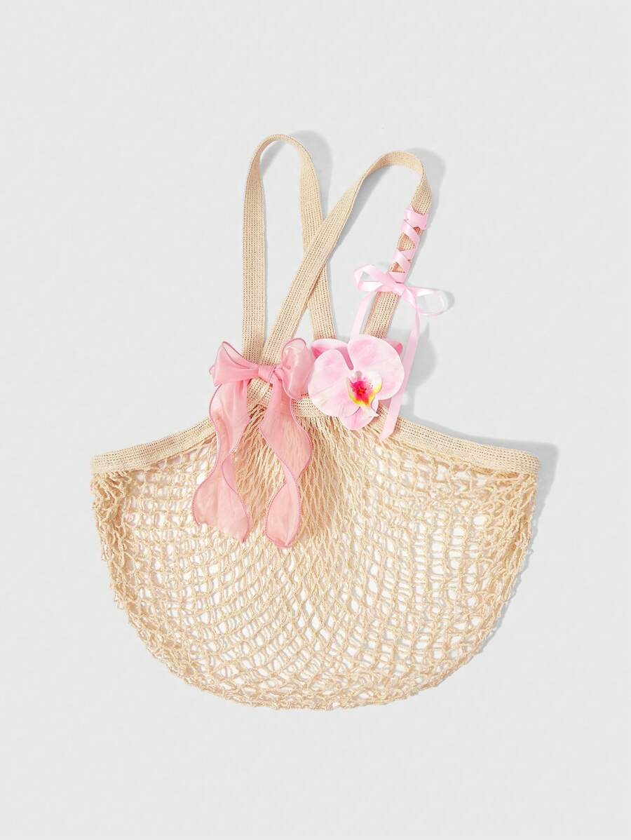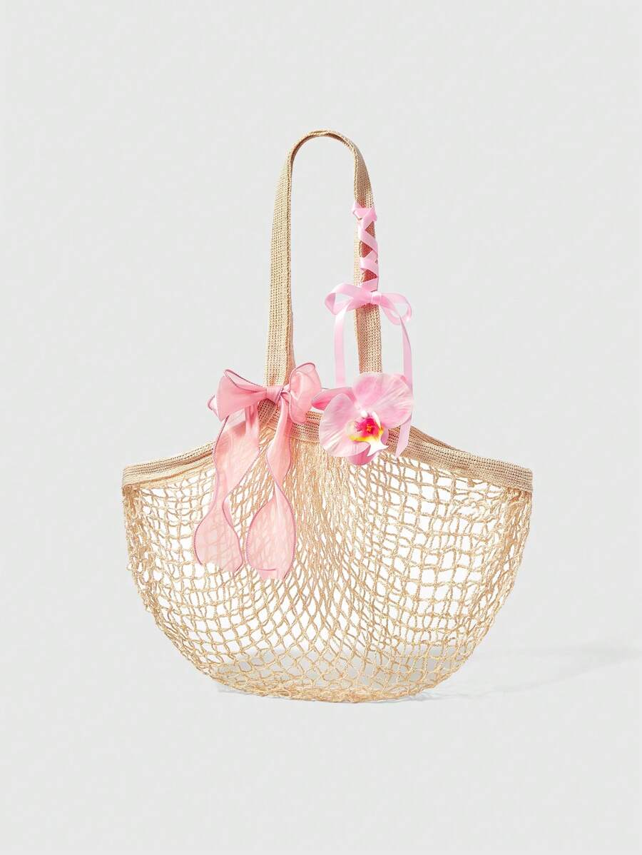 Kawaii Charm de bolso de estilo Ins de lujo, moda delicada, versátil y de alta gama con moño de tul rosa, adecuado para el uso diario de mujeres/señoras o como regalo para la mujer, se adapta a bolsos de hombro