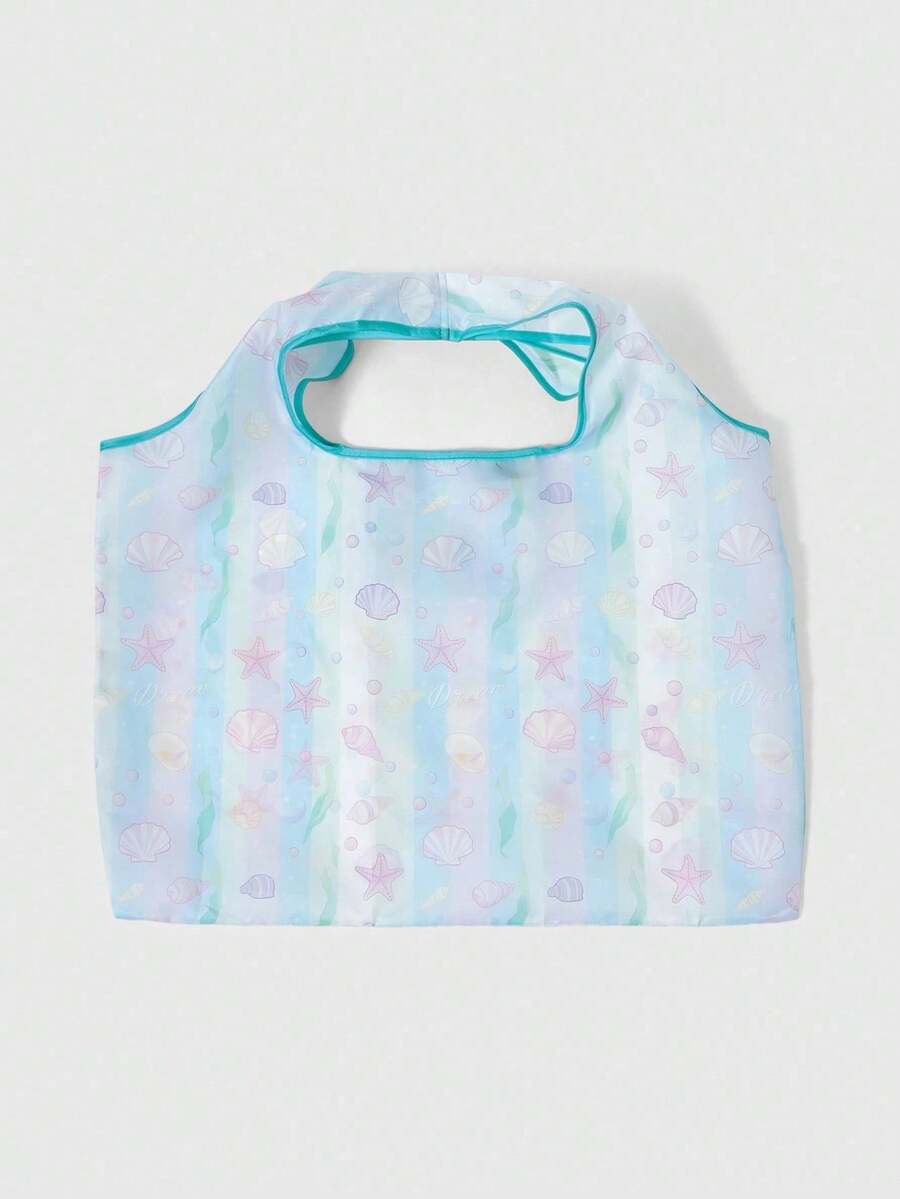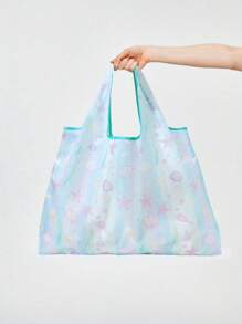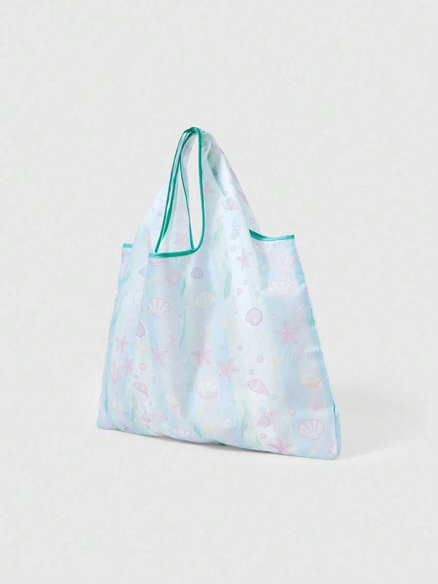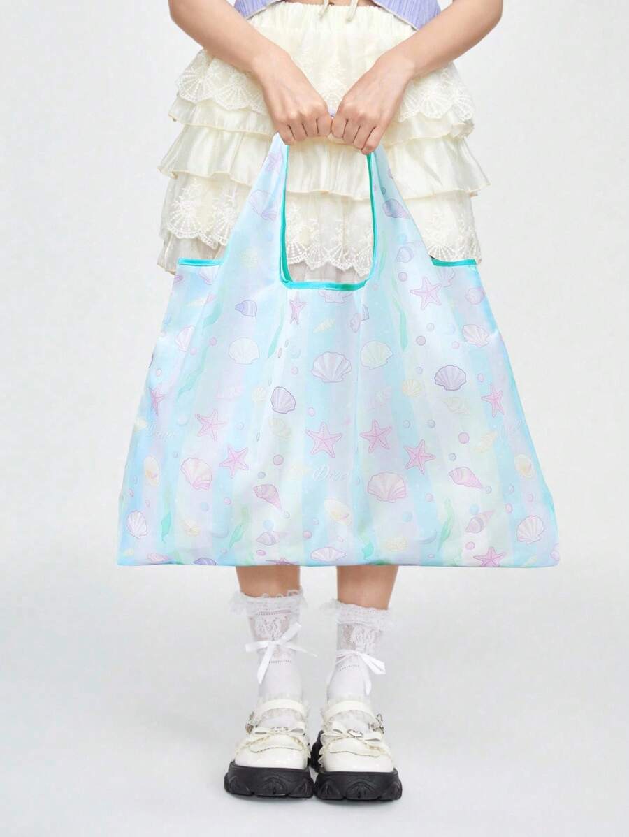Kawaii Bolsa de mano plegable con capacidad grande, con estampado de criaturas del océano azul, con bolsillo con cremallera, 1480203