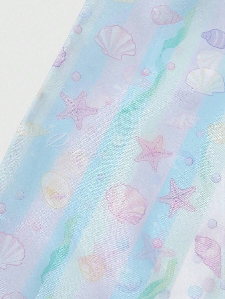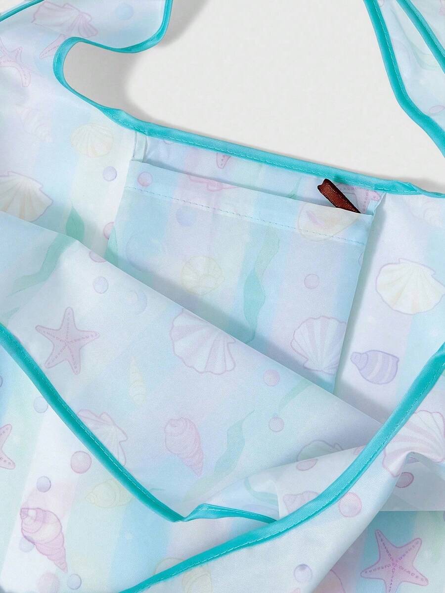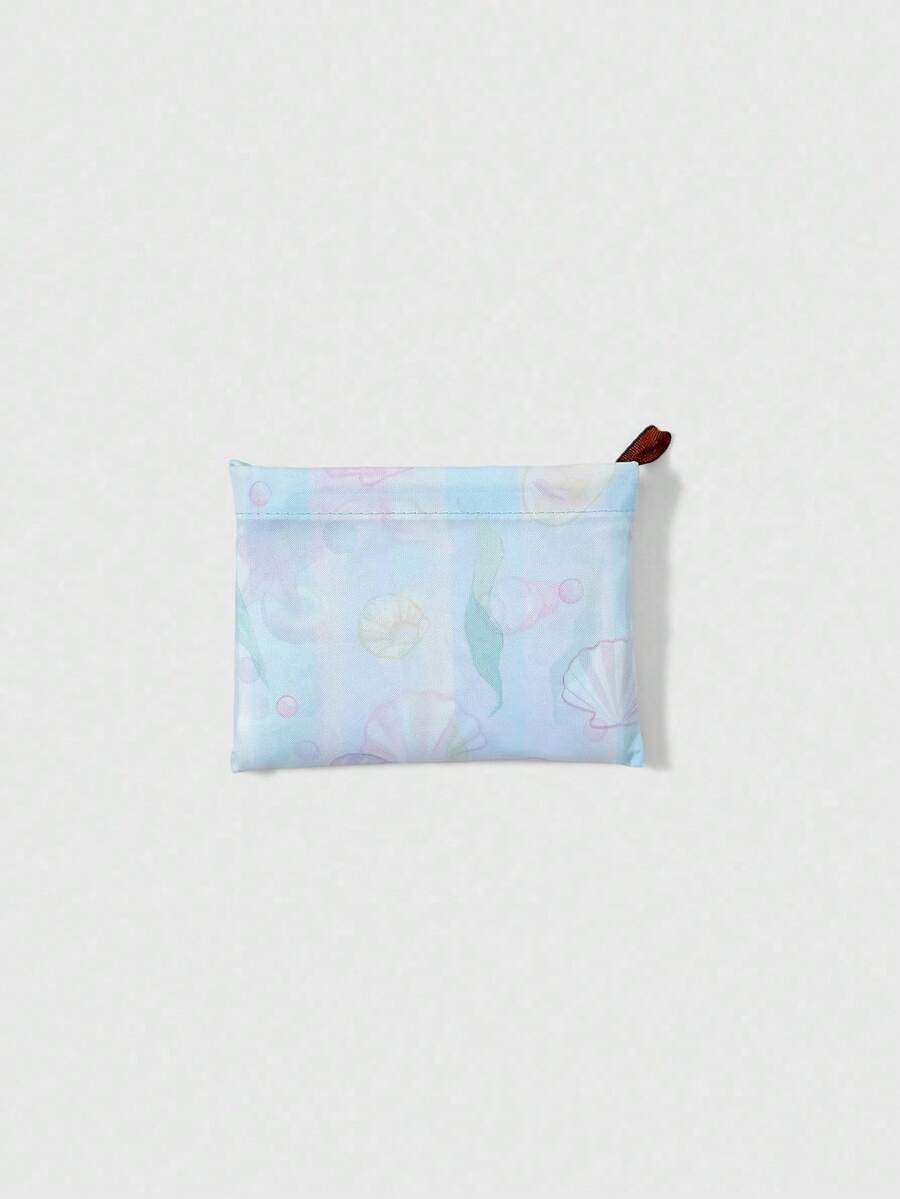 Kawaii Bolsa de mano plegable con capacidad grande, con estampado de criaturas del océano azul, con bolsillo con cremallera, 1480203