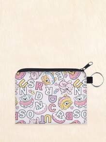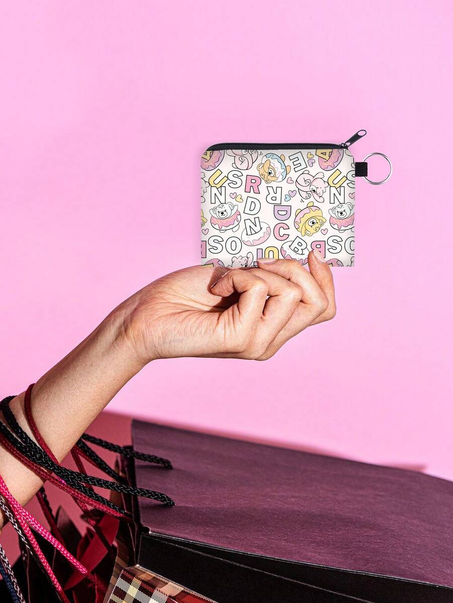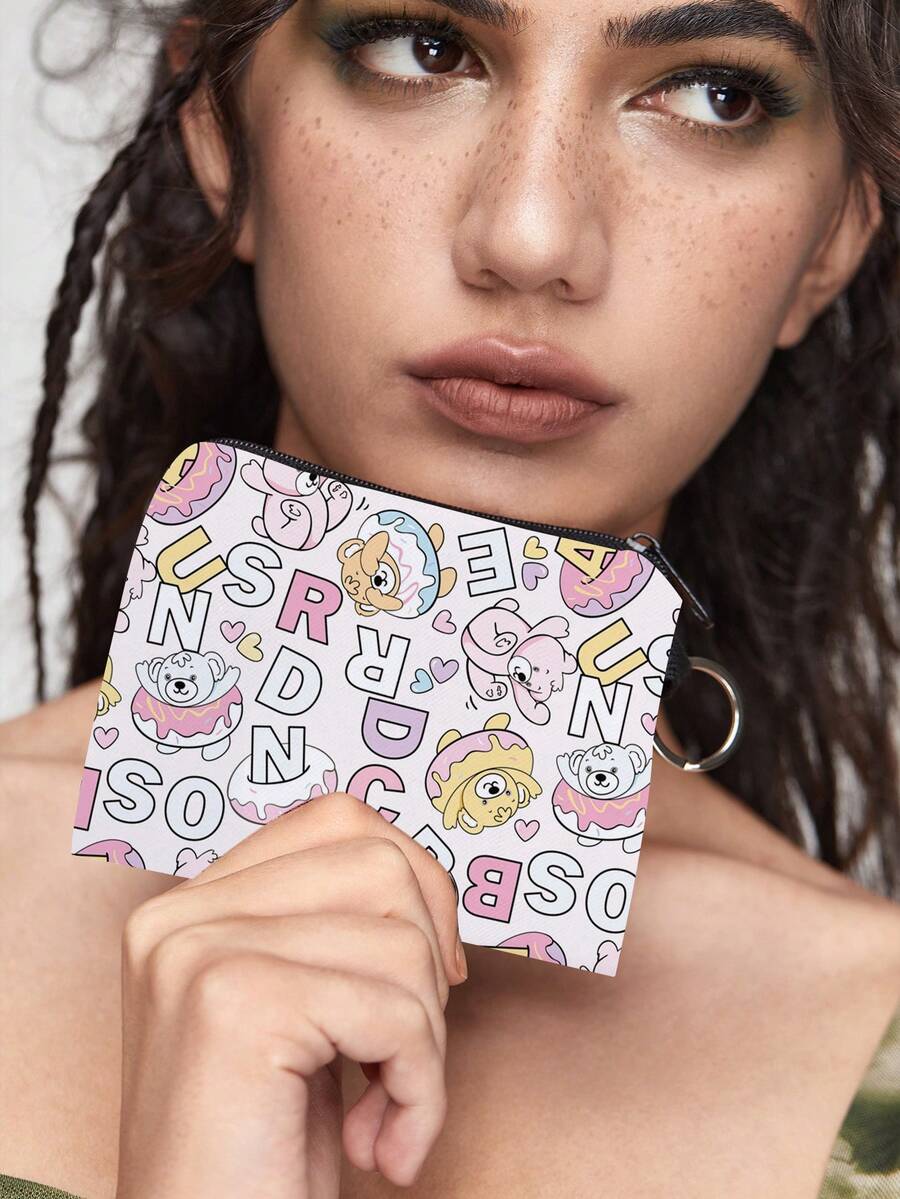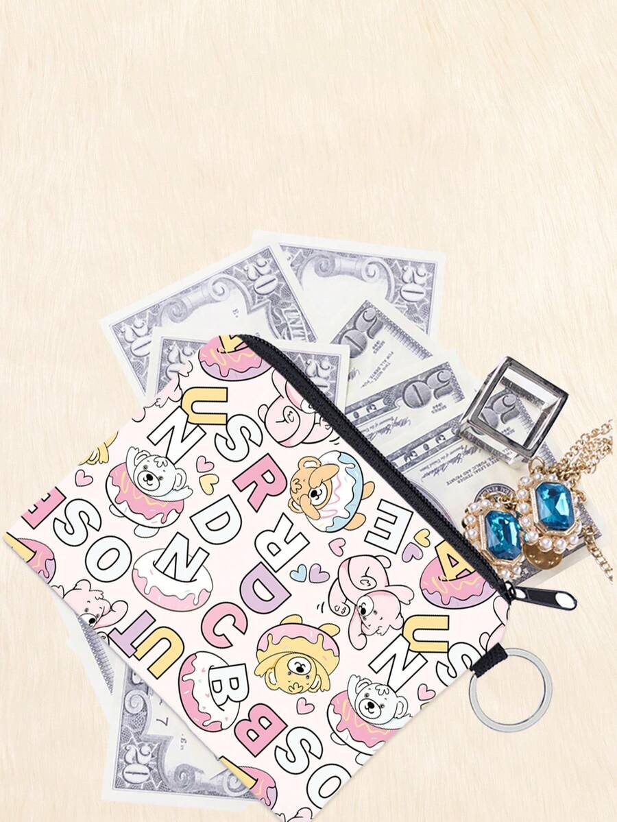 Kawaii Monedero De Oso De Dibujos Animados Con Diseño Impreso De Letra, Estilo De Patrón De Flores: #337780