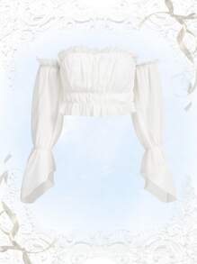 Kawaii Blusas de Mujer Volante fruncido Bajo con volante Liso Casual