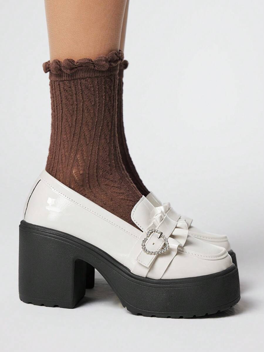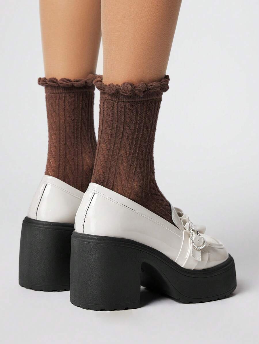 Kawaii Zapatos Mary Jane de tacón ancho y punta redonda, talla pequeña