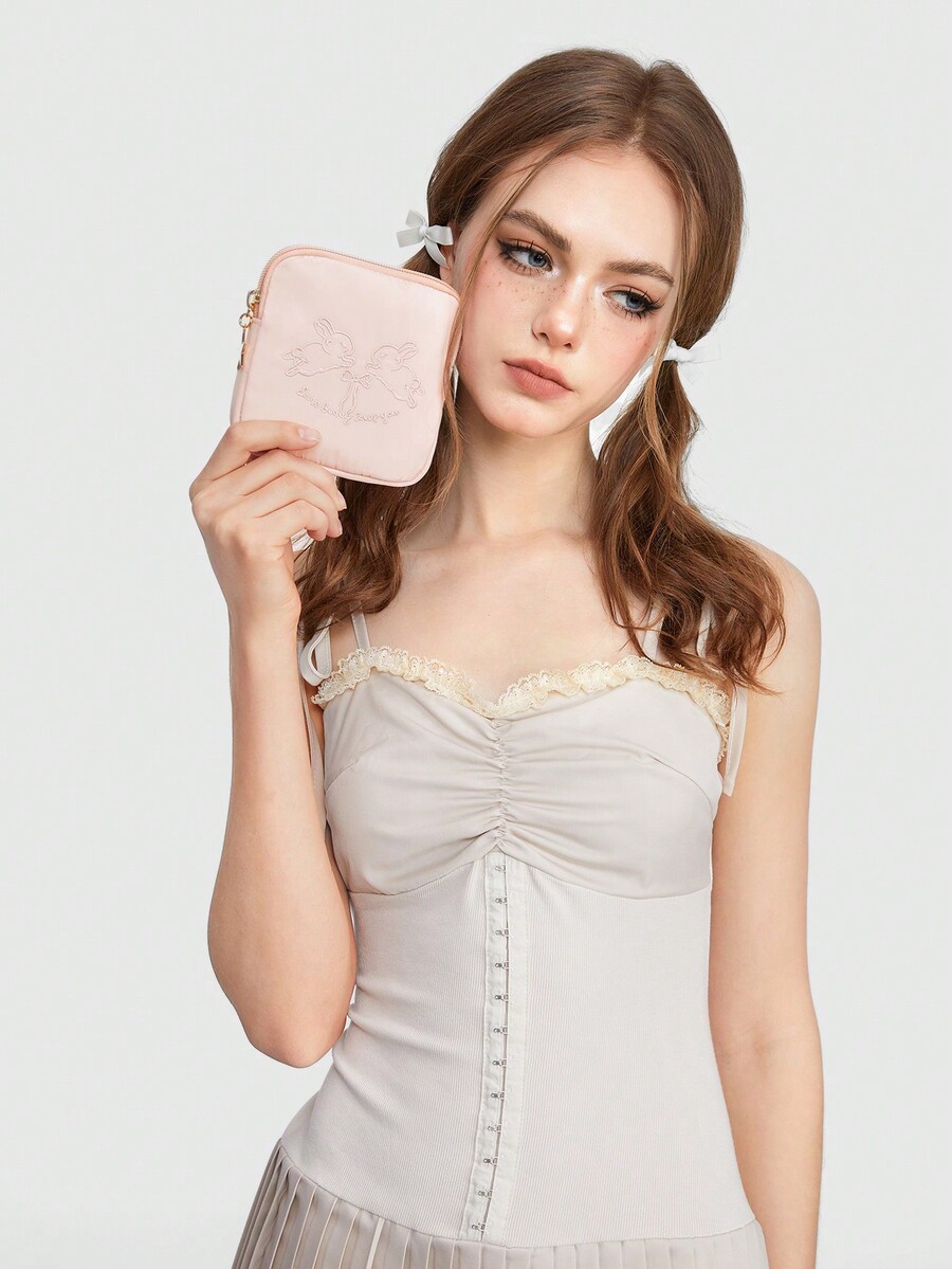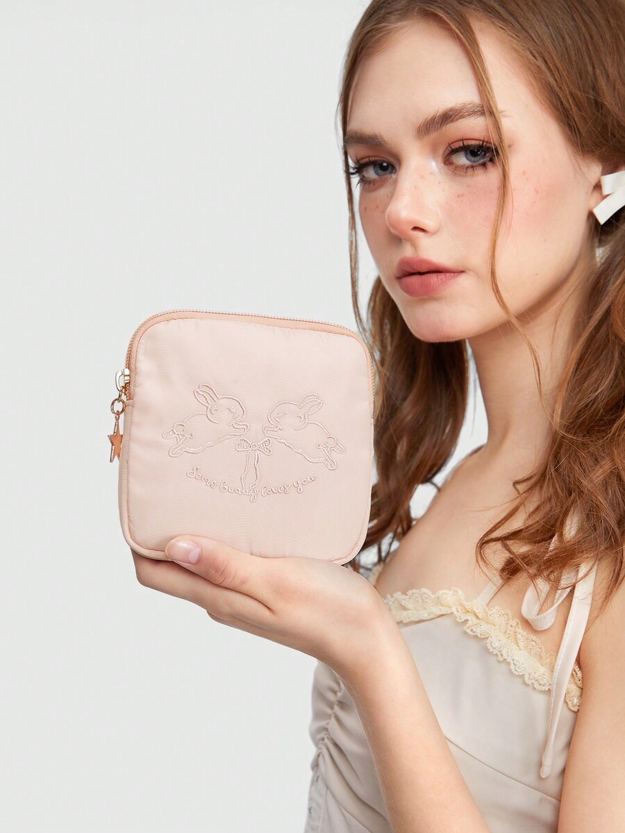 Kawaii Bolsa de monedas rosa bordada de conejo