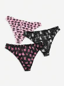 Kawaii Talla grande 3 piezas Bragas estampado de cráneo