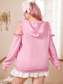 Kawaii Talla grande Capucha con estampado de dibujos animados de hombros descubiertos ribete con fruncido con cordón