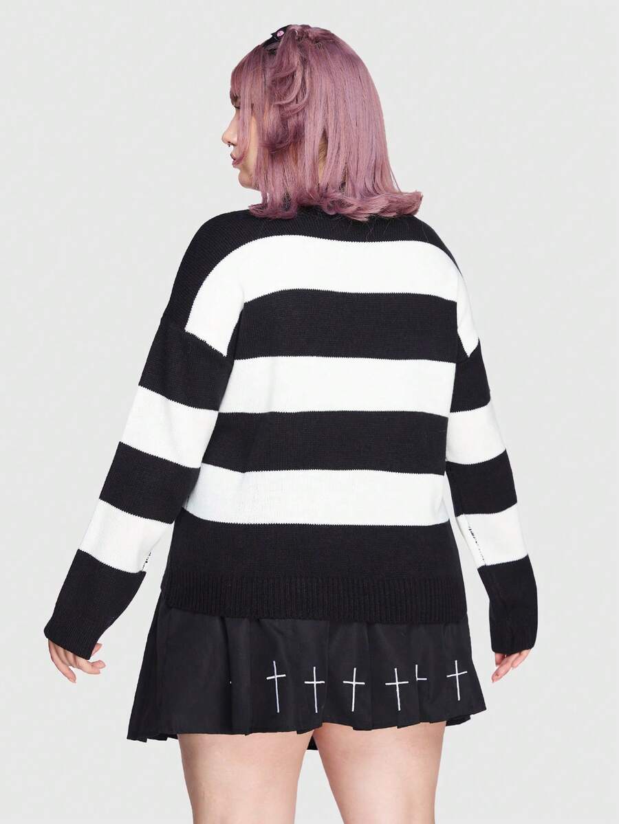 Kawaii Talla grande Jersey con patrón de rayas de hombros caídos