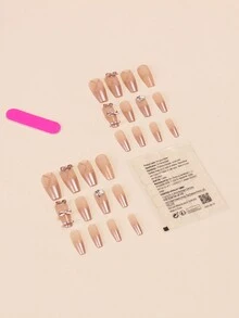 Kawaii Puntas de uñas con diamante de imitación & con diseño de lazo