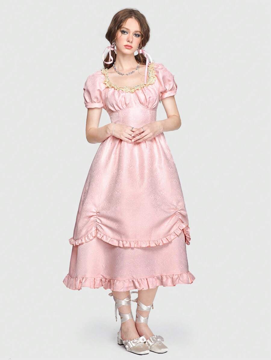 Kawaii Vestido pecho con fruncido bajo con fruncido