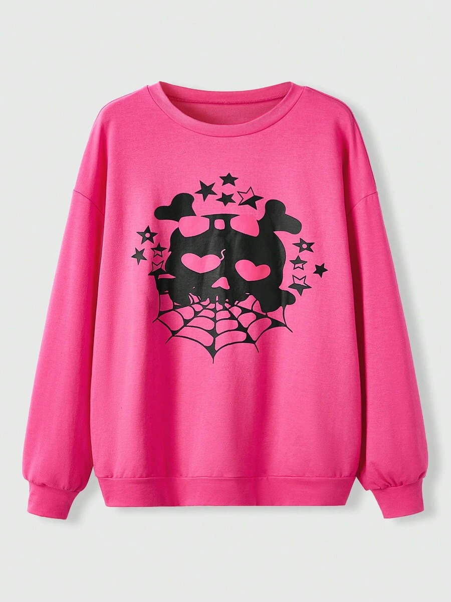 Kawaii Sudadera estampado de cráneo de hombros caídos