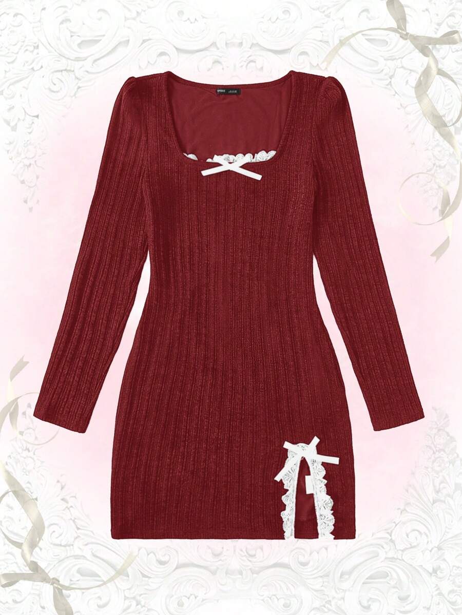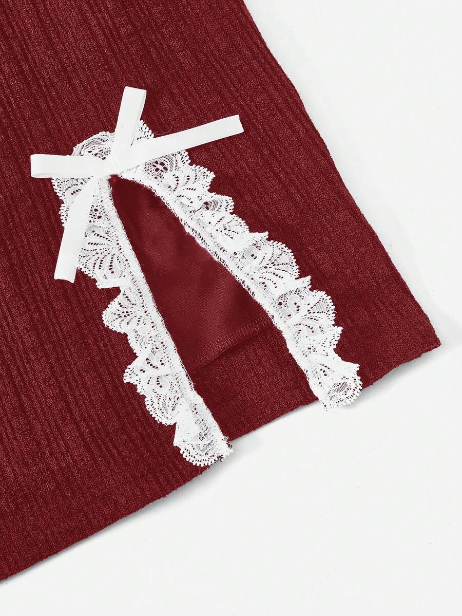 Kawaii Vestido Con Dobladillo Con Abertura Y Adornado Con Encaje