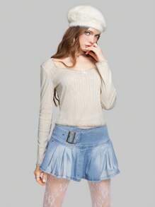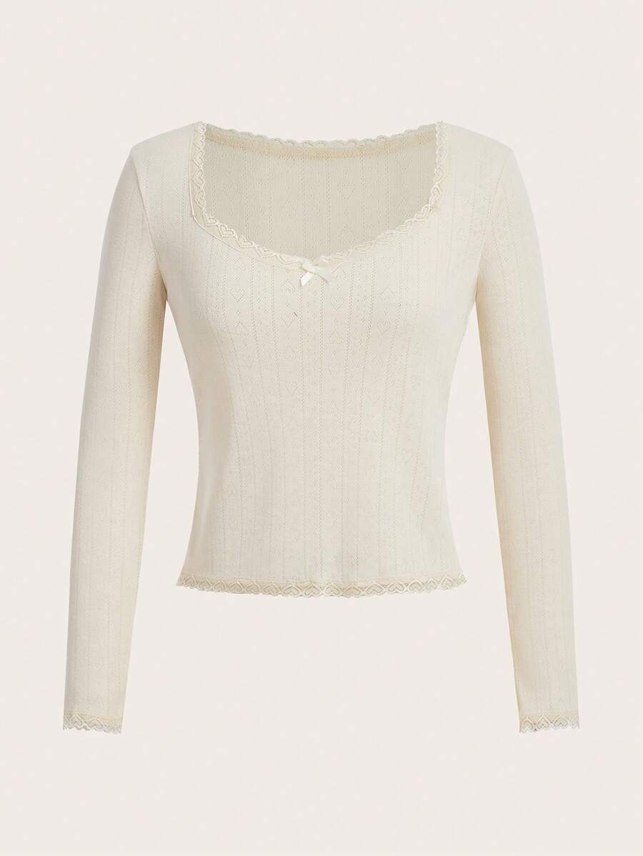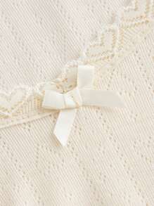 Kawaii Camiseta unicolor ribete con encaje con diseño de lazo