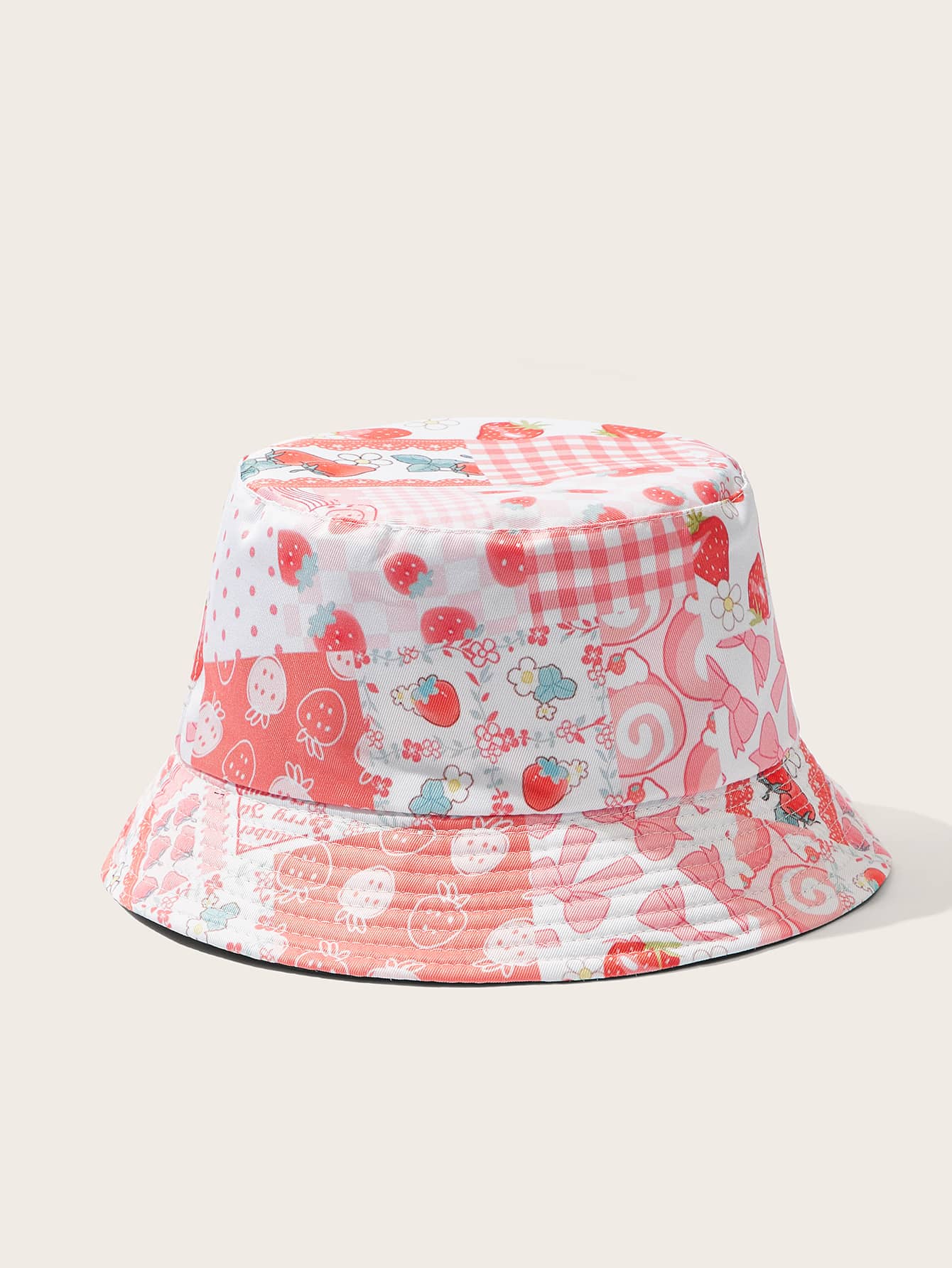 Kawaii Sombrero cubo con estampado de fresa