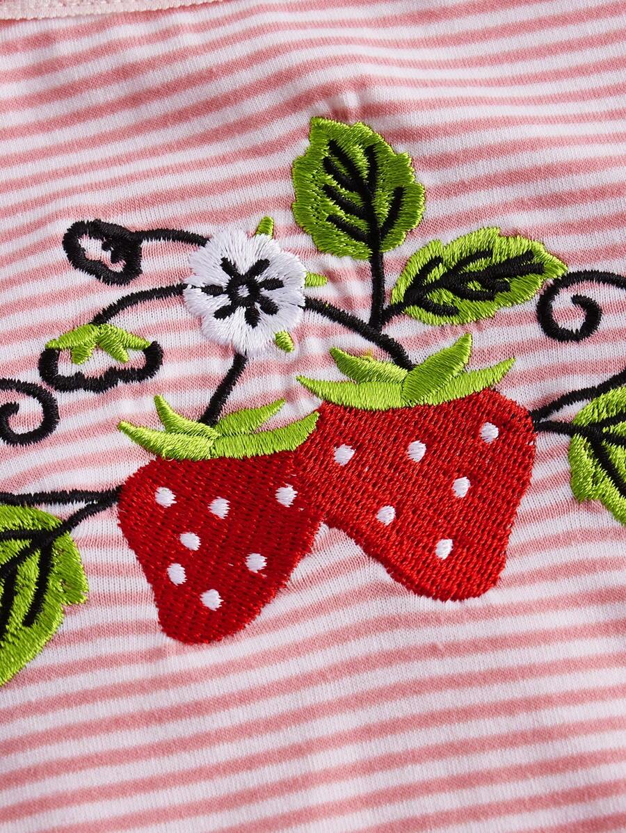 Kawaii Top de tirantes de rayas & con bordado de fresa con encaje en contraste