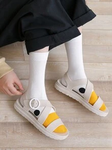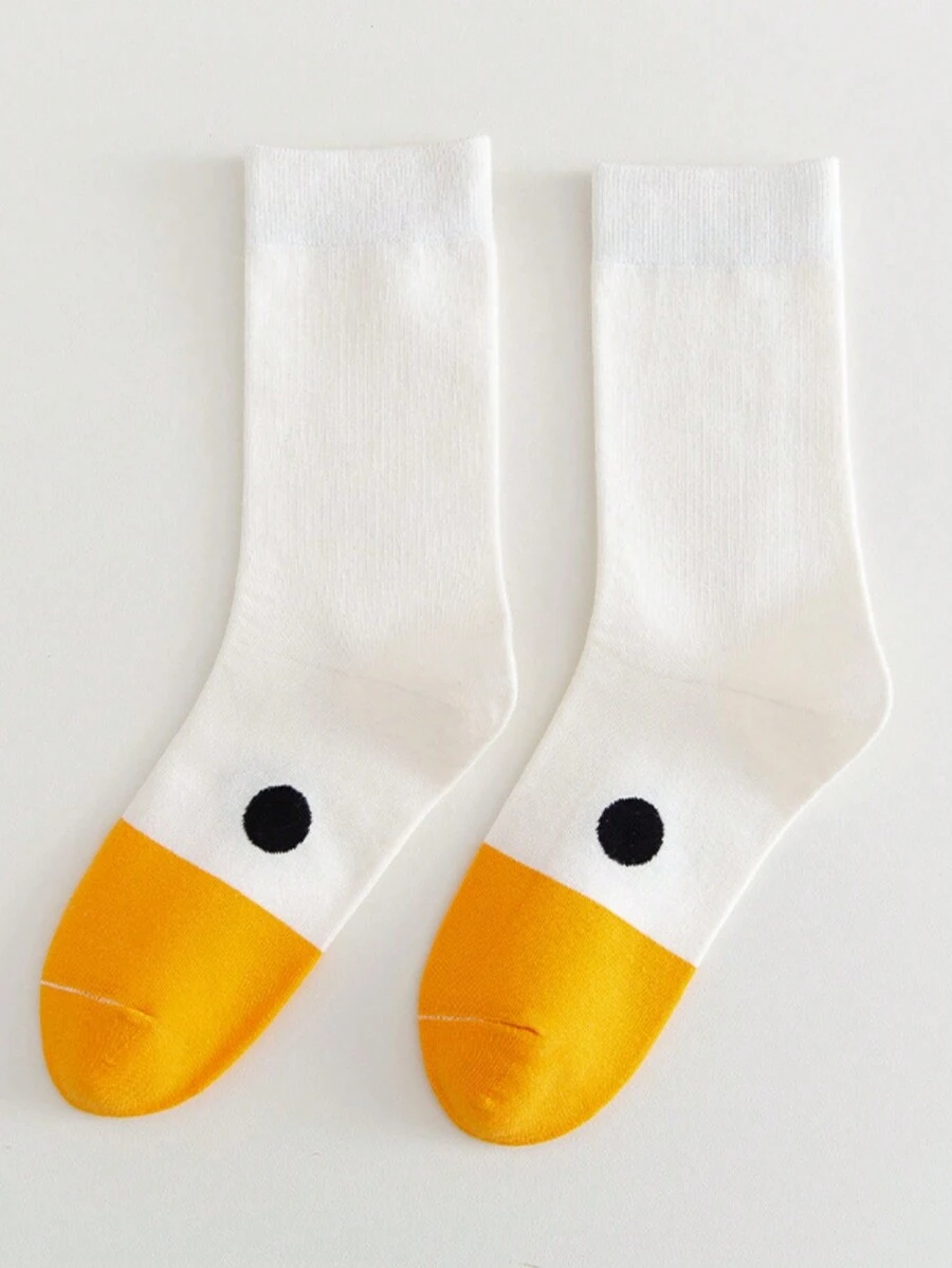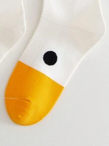 Kawaii Calcetines Para Mujer Con Diseño De Lunares En Amarillo Y Parche Blanco De Media Pantorrilla