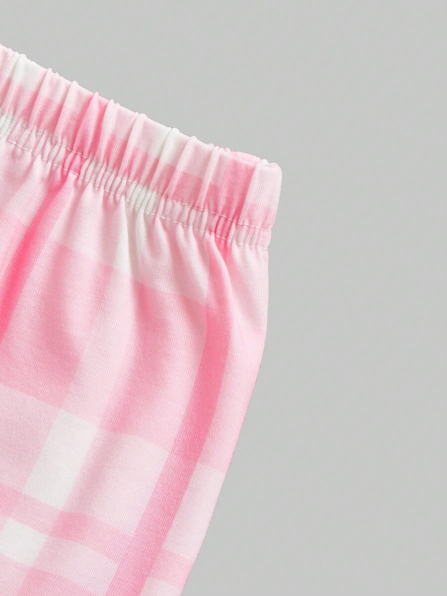 Kawaii Conjunto De Pijama De Mujer Con Camiseta Estampada Con Letras De Dibujos Animados Y Pantalones Largos Con Estampado De Cuadros
