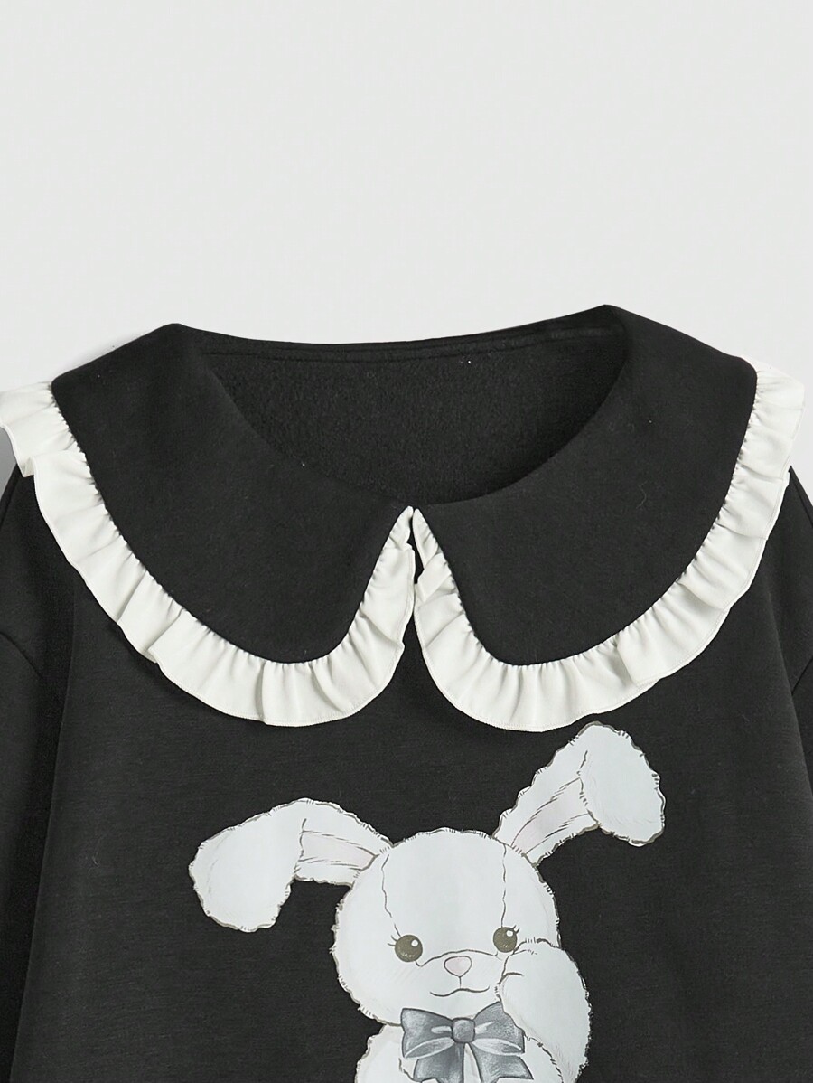 Kawaii Sudadera con cuello de Peter Pan para mujer con estampado de conejo de dibujos animados y letras