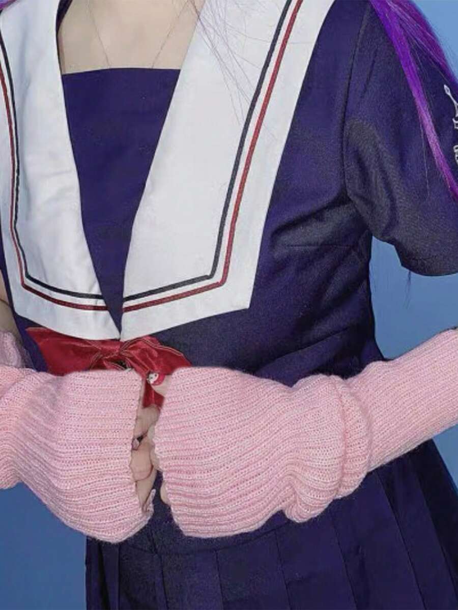 Kawaii Guantes de mujeres sin dedos cálido longitud media tejido