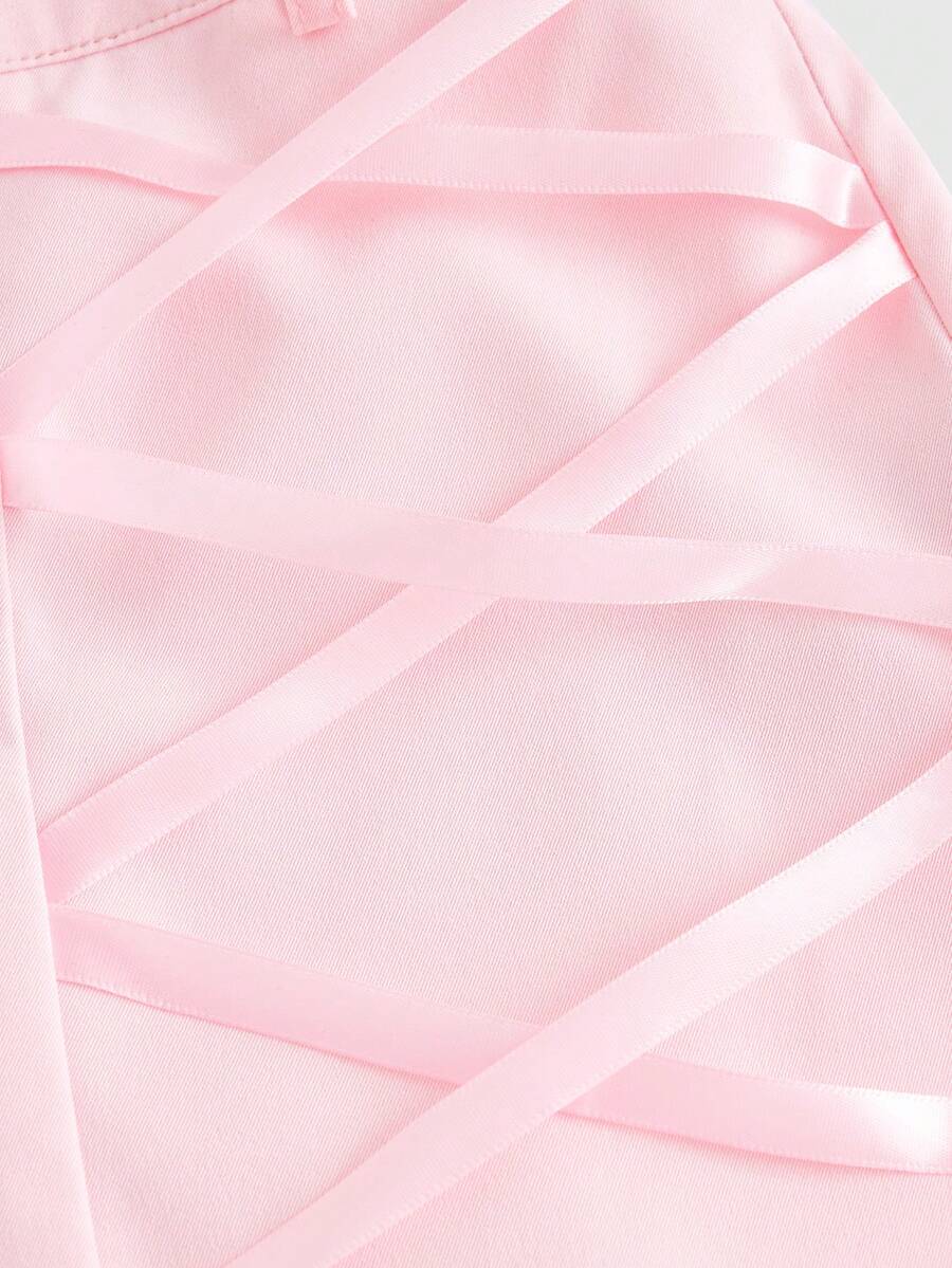 Kawaii Talla grande Pantalones cargo de mujeres con cordón cintura lado de rayas con bolsillo con solapa