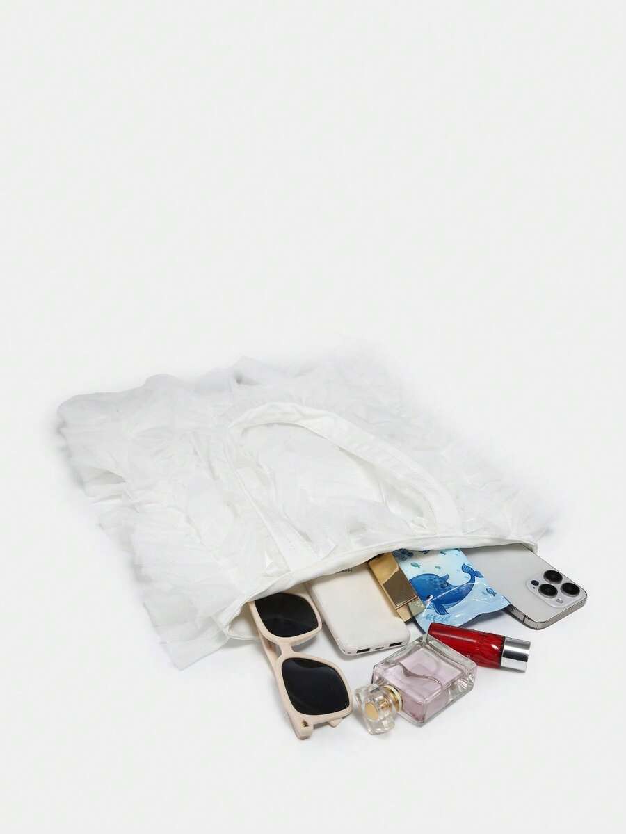 Kawaii Bolso de tela grande con volantes y lazos, estilo retro de vacaciones, para mujer
