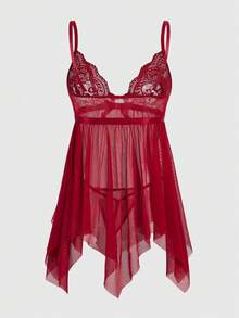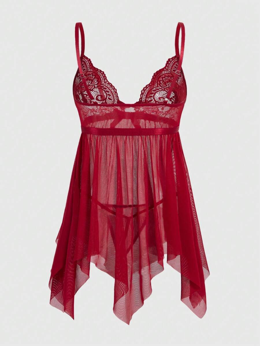 Kawaii Vestido Lencero De Encaje Sexy Para Mujer Con Tanga A Juego
