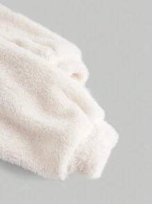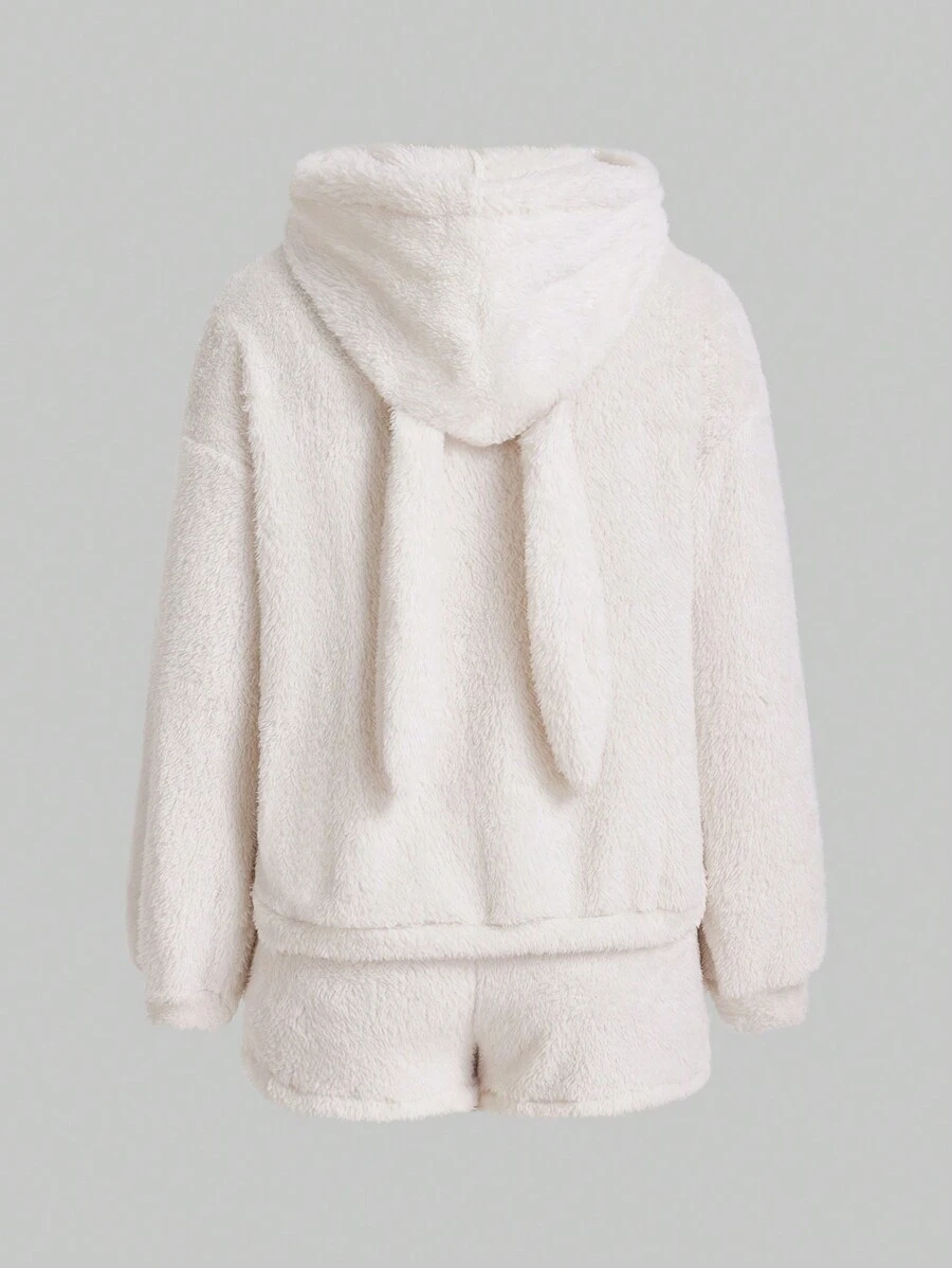 Kawaii Conjunto De Pijama Con Capucha De Franela De Color Sólido Para Mujer Con Mangas Largas Y Pantalones