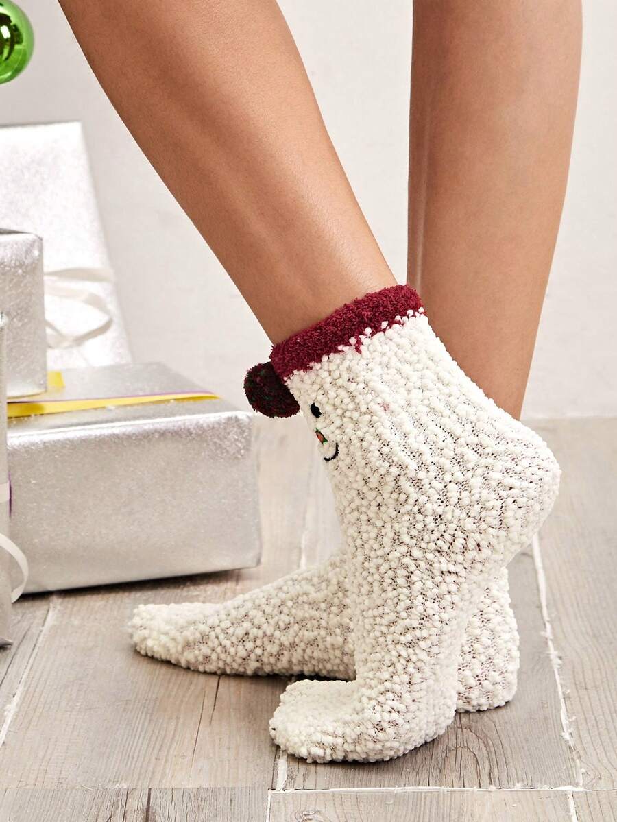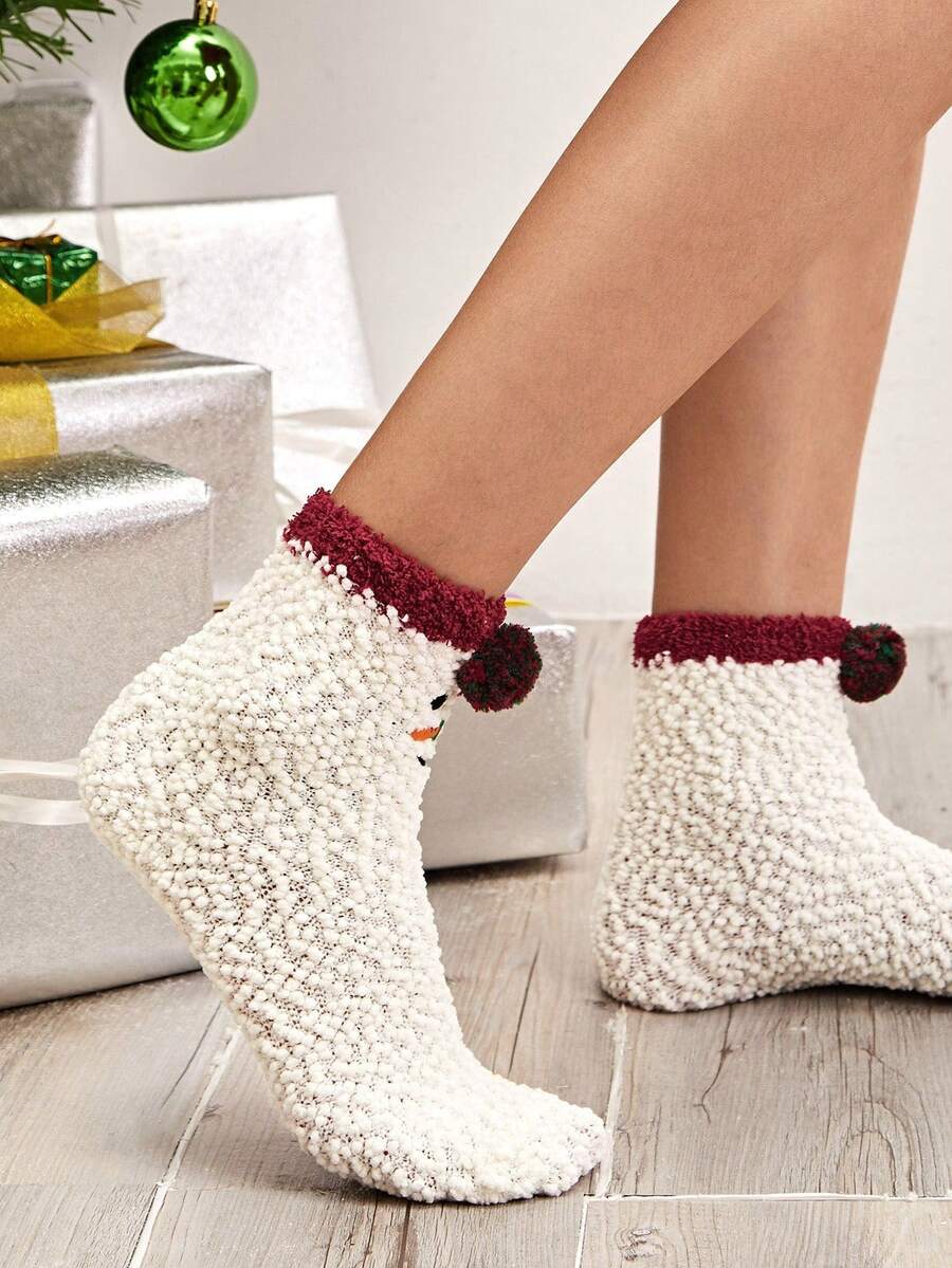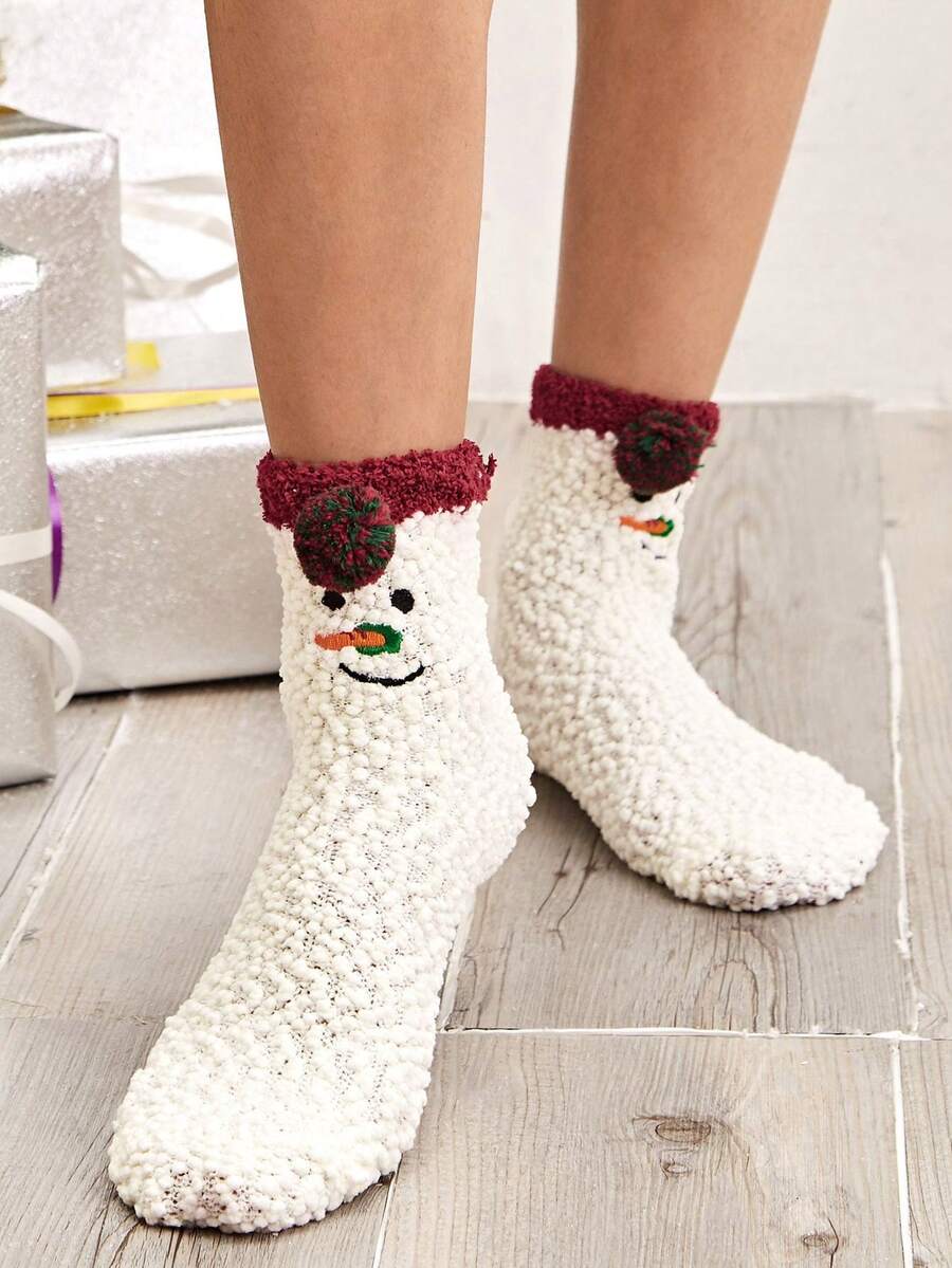 Kawaii Calcetines de mujeres blanco Navidad con muñeca de nieve