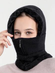 Gorro De Punto Para Mujeres Con Solapas Para Las Orejas, Gorro Tejido De Invierno Engrosado Y Forrado Con Cuello De Abrigo Incluido
