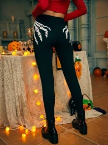 Leggings con estampado de esqueleto de Halloween